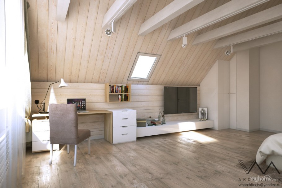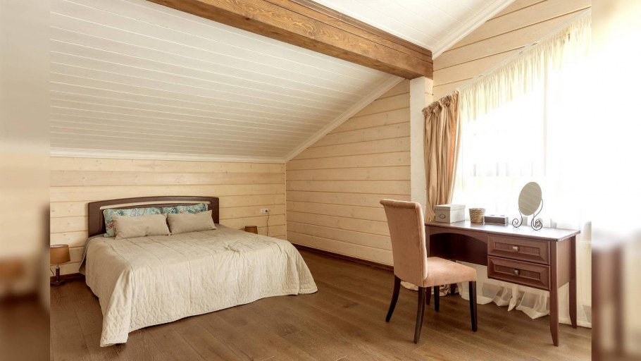 Интерьер мансарды из клееного бруса