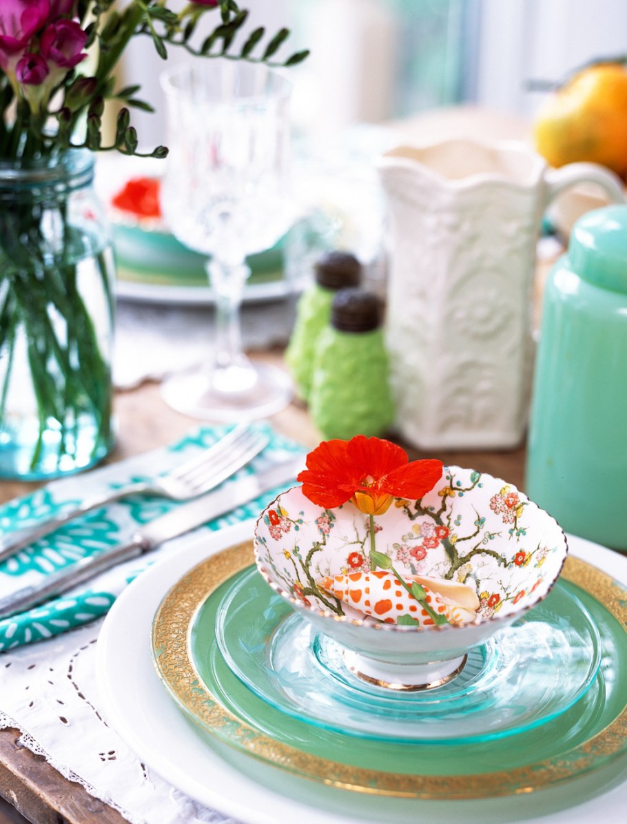 Сервировка в бирюзовых тонах в интерьере (47 фото)