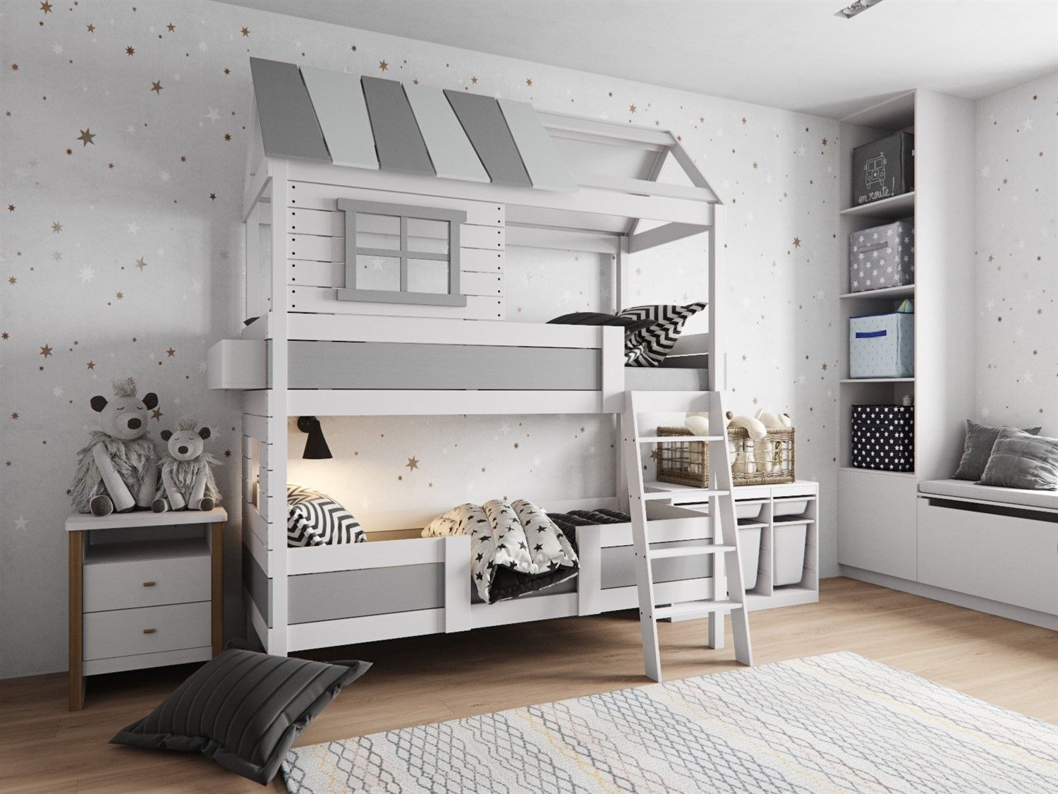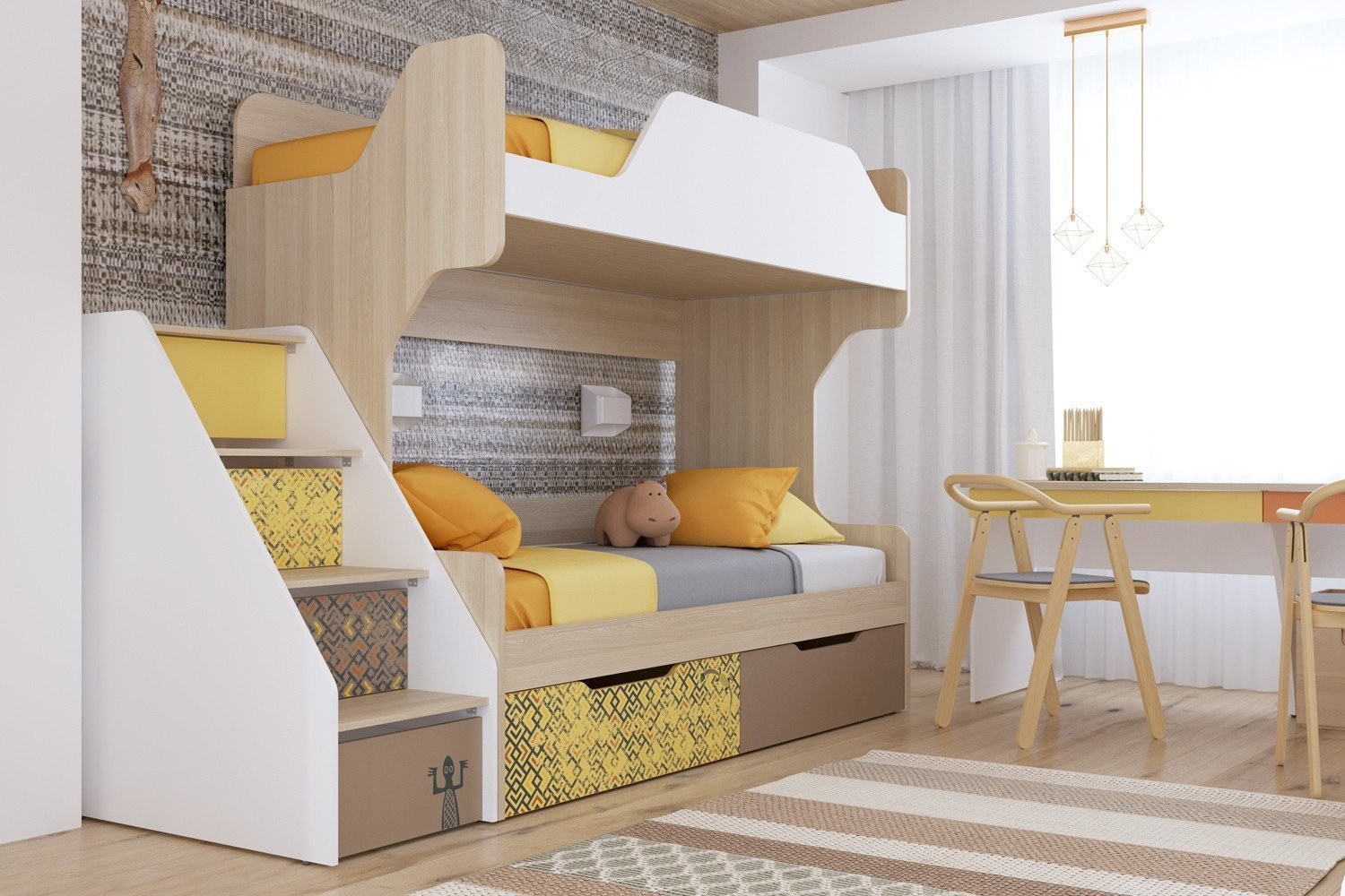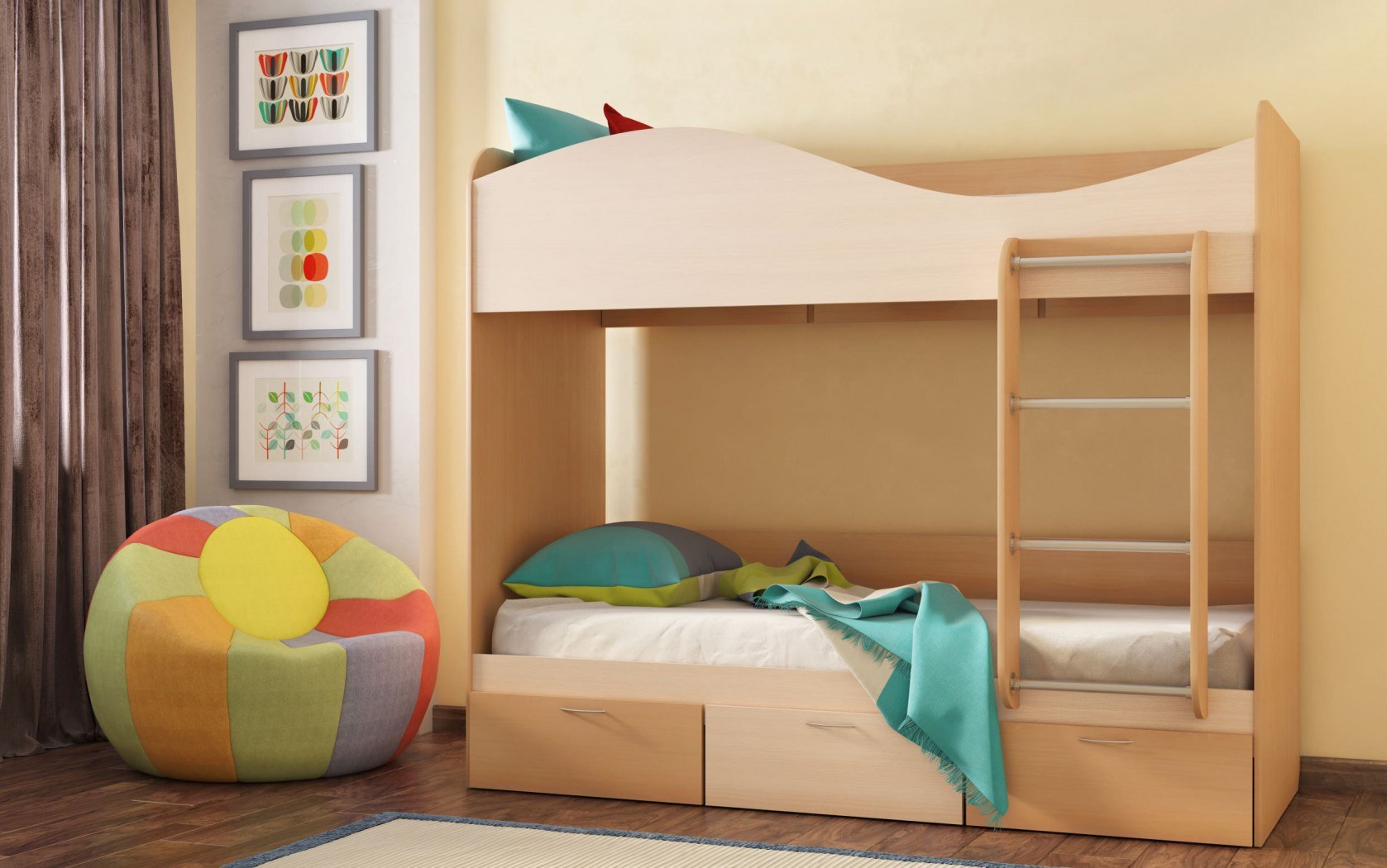 Двухъярусная кровать для детей в интерьере (43 фото)