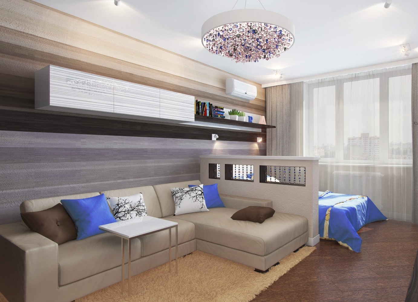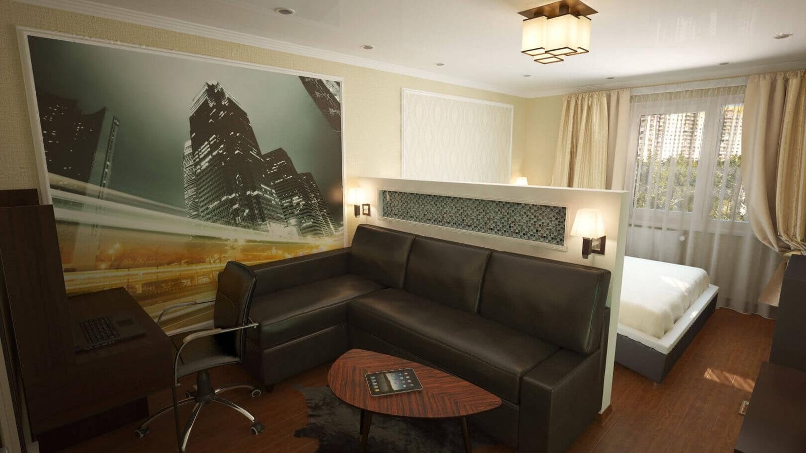 Зональное Разделение комнаты на спальню и гостиную 18 кв.м