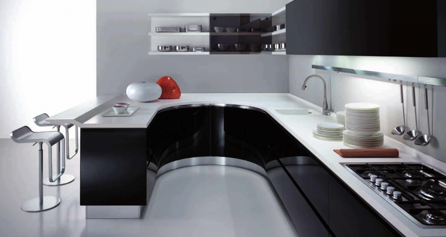 Черно белая глянцевая кухня