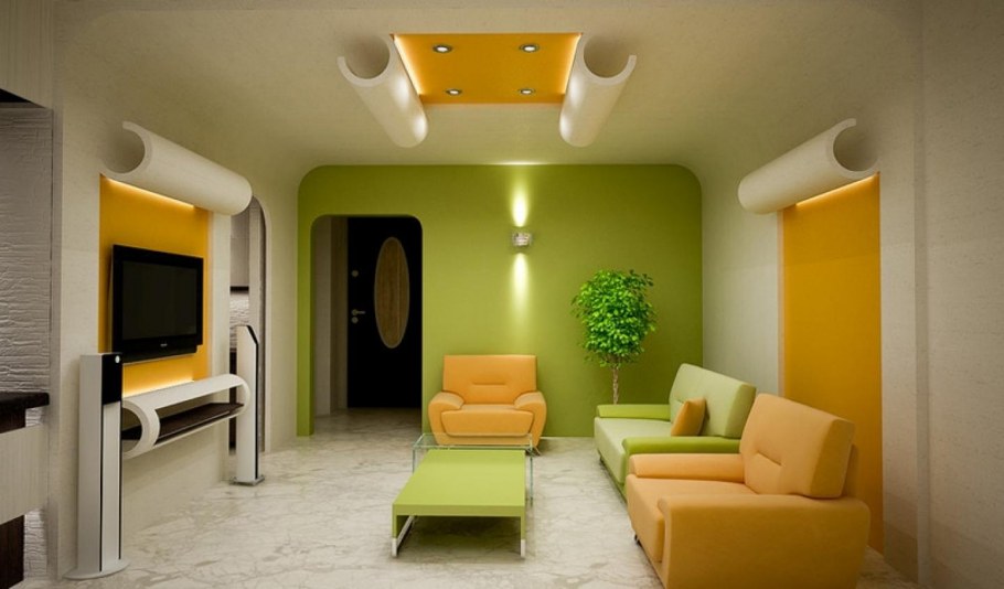Гостиная в желто зеленом цвете