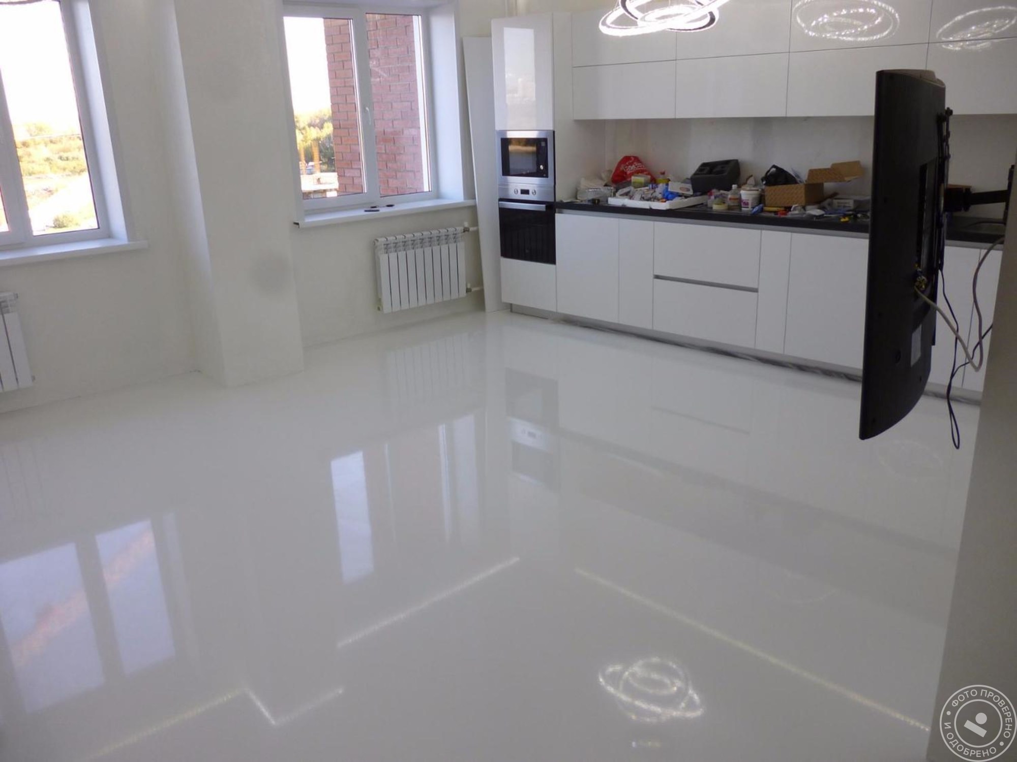 Белый глянцевый наливной пол