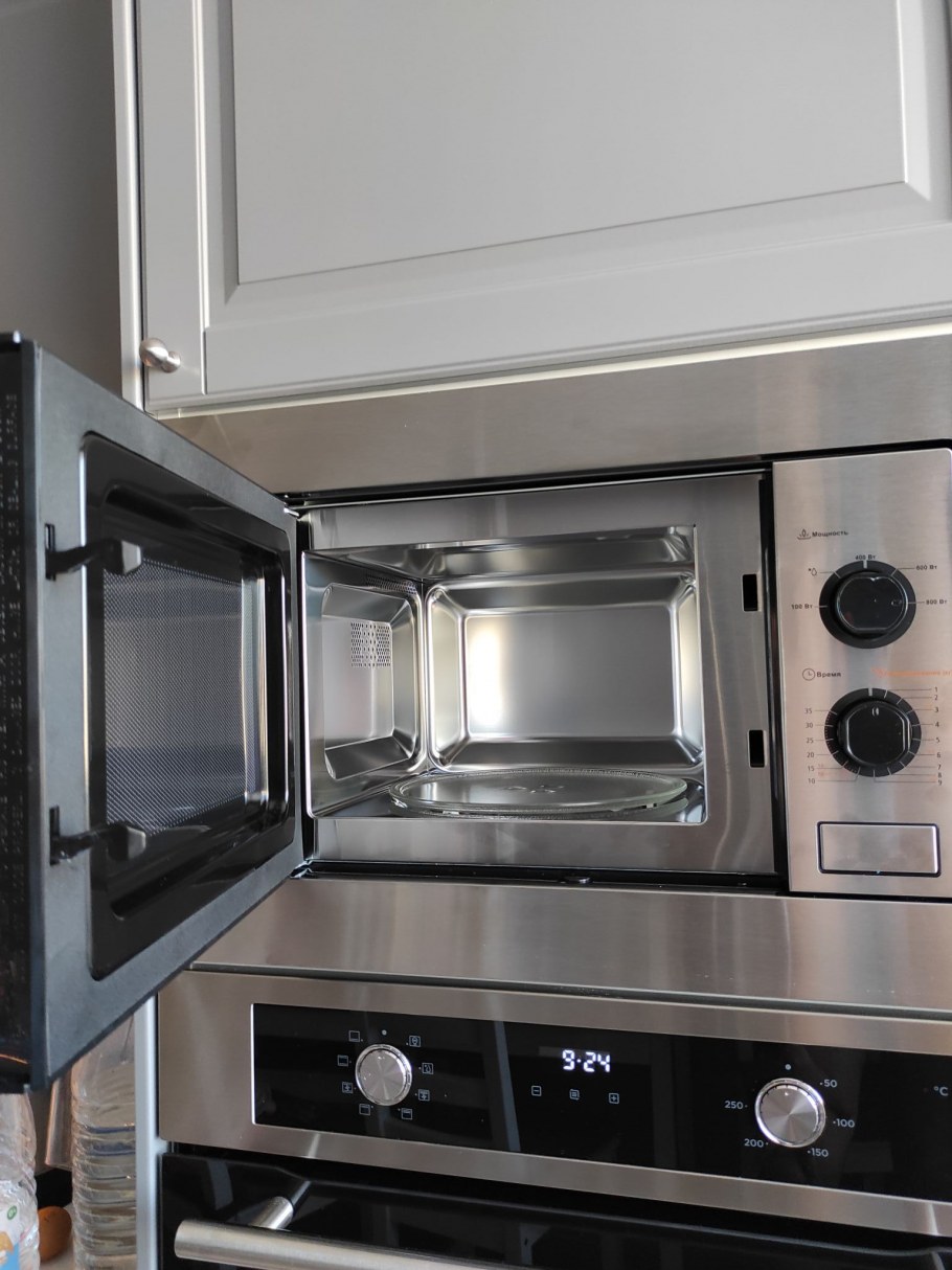Встроенная микроволновая печь в интерьере кухни (52 фото)