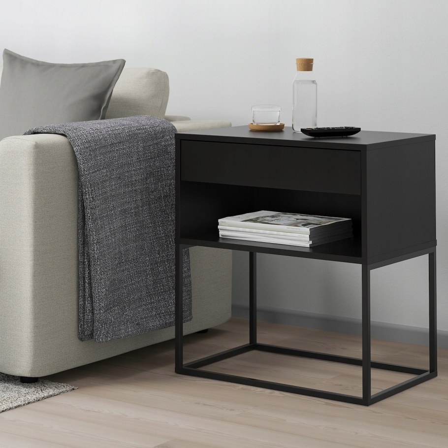 ХЕМНЭС тумба прикроватная, черно-коричневый, 46x35 см