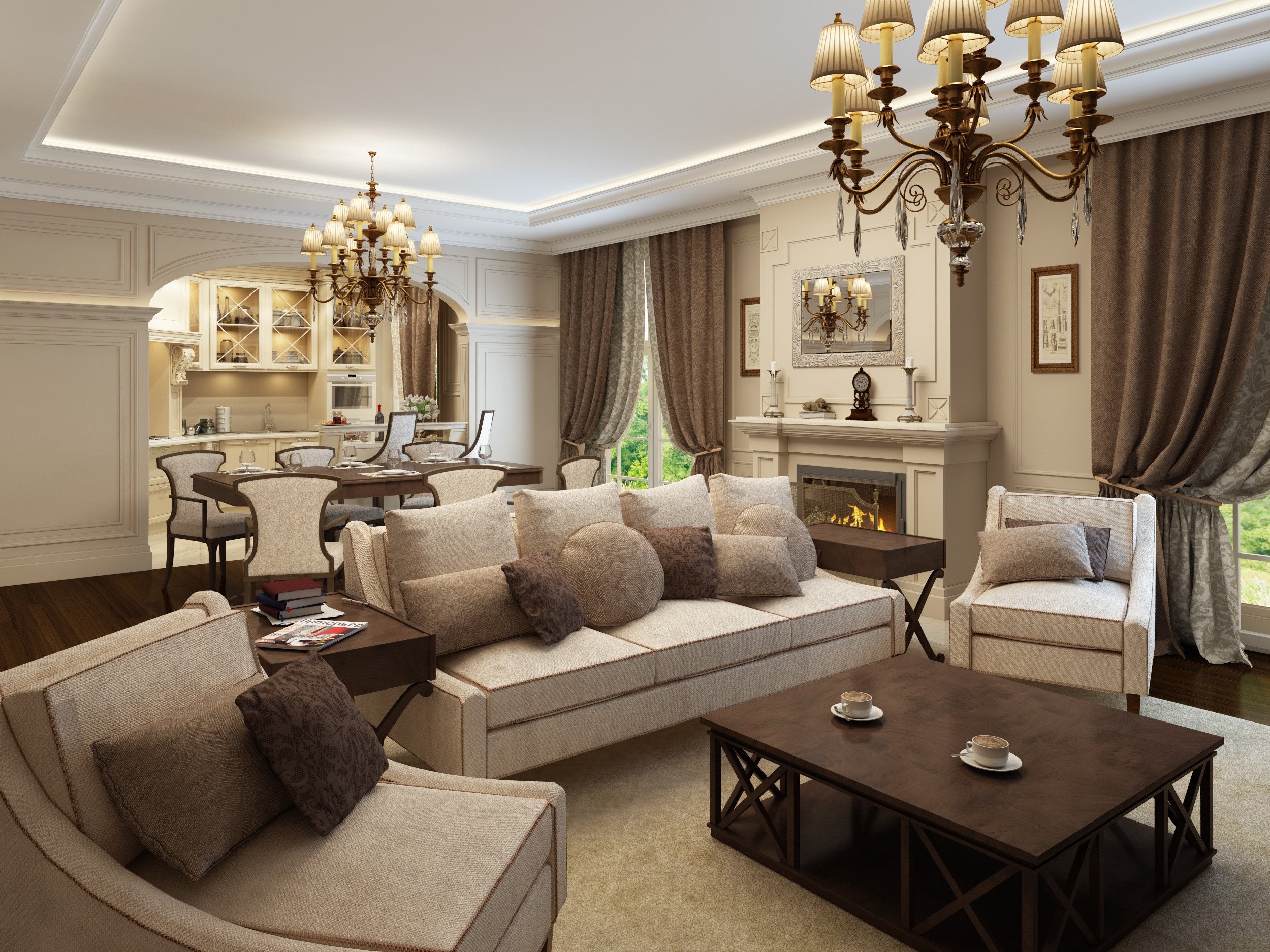 Кухня-гостиная Неоклассика 20 кв метров