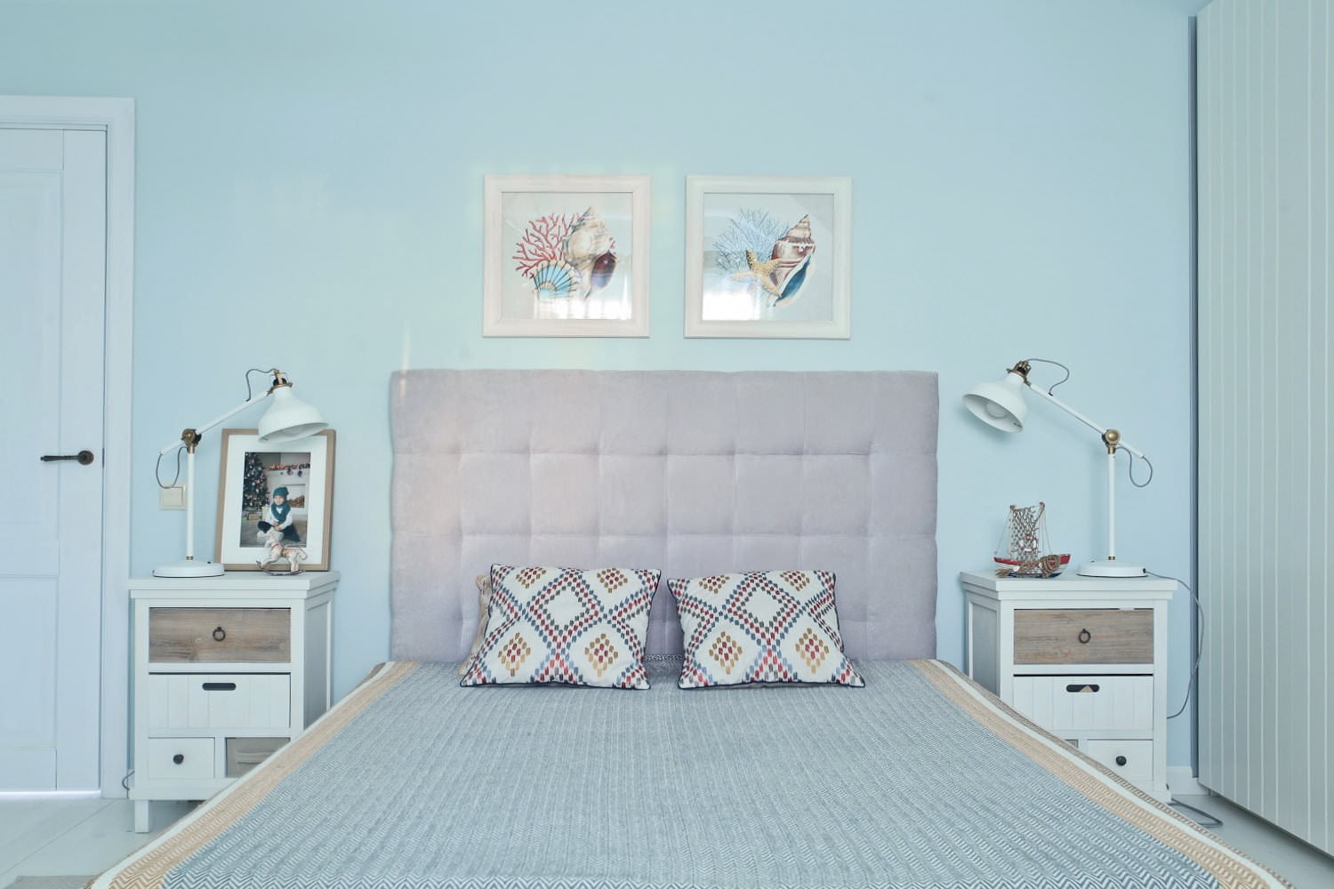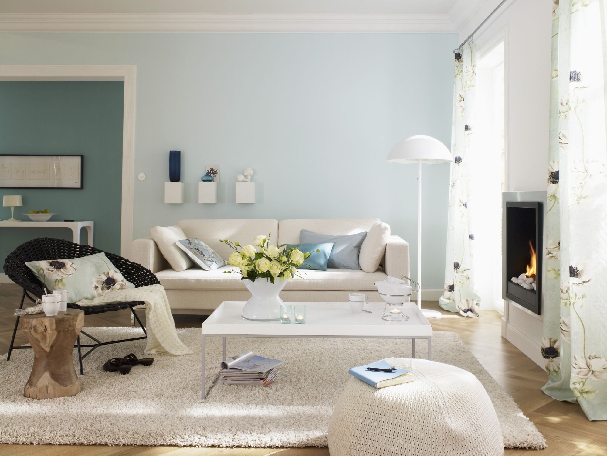 Светло голубые стены в интерьере