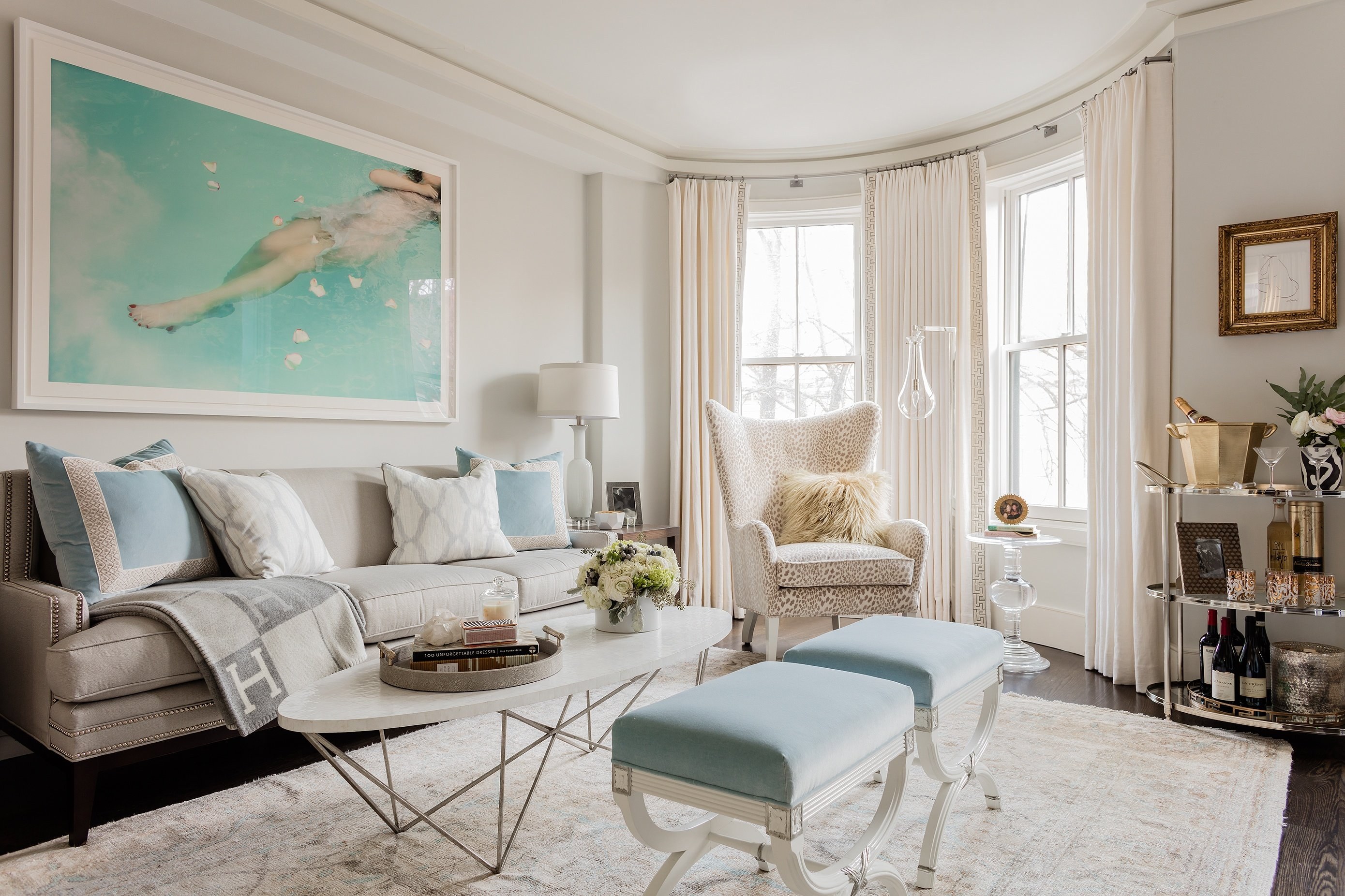 Пастельно голубая гостиная