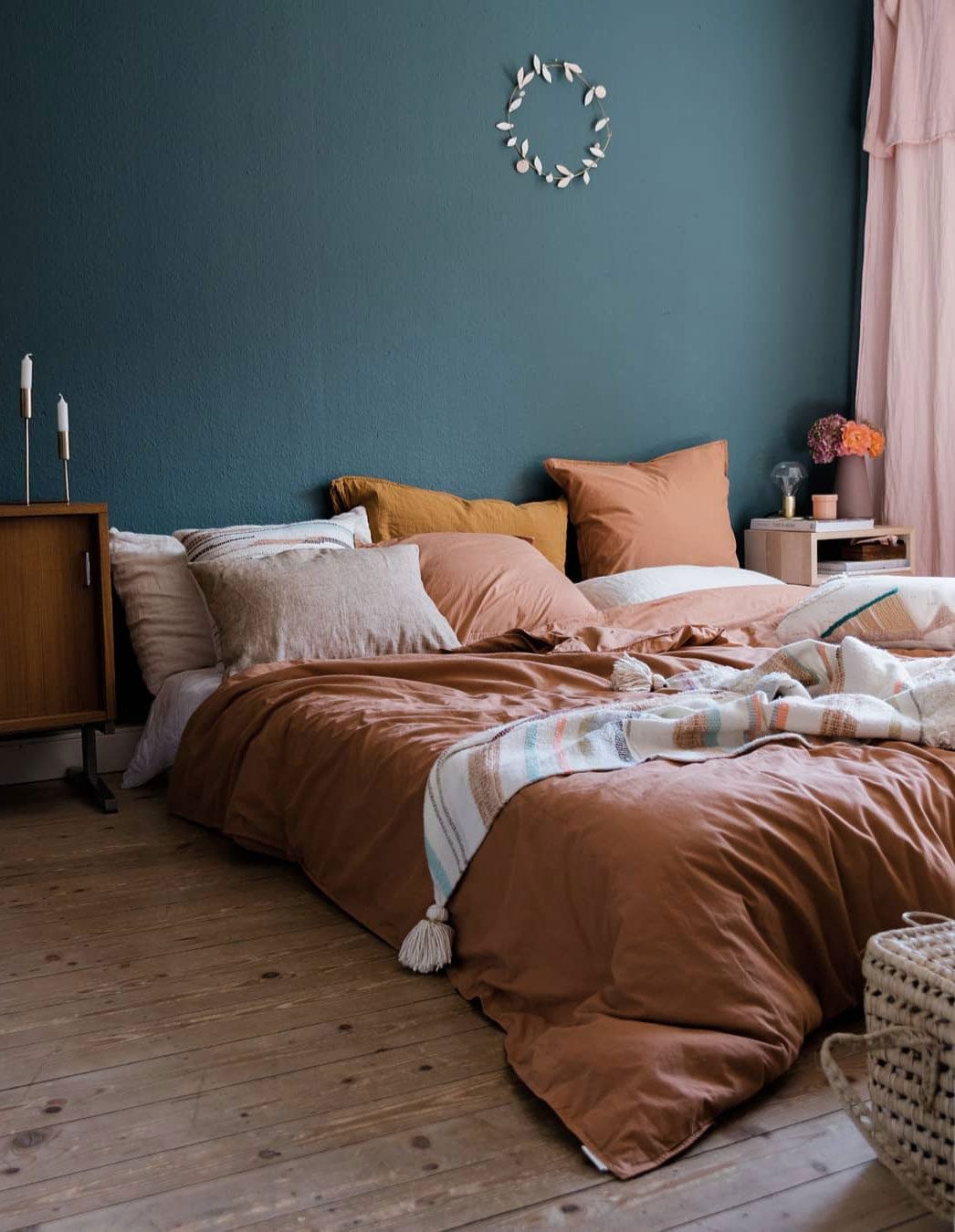 Спальня в коричнево бирюзовом цвете