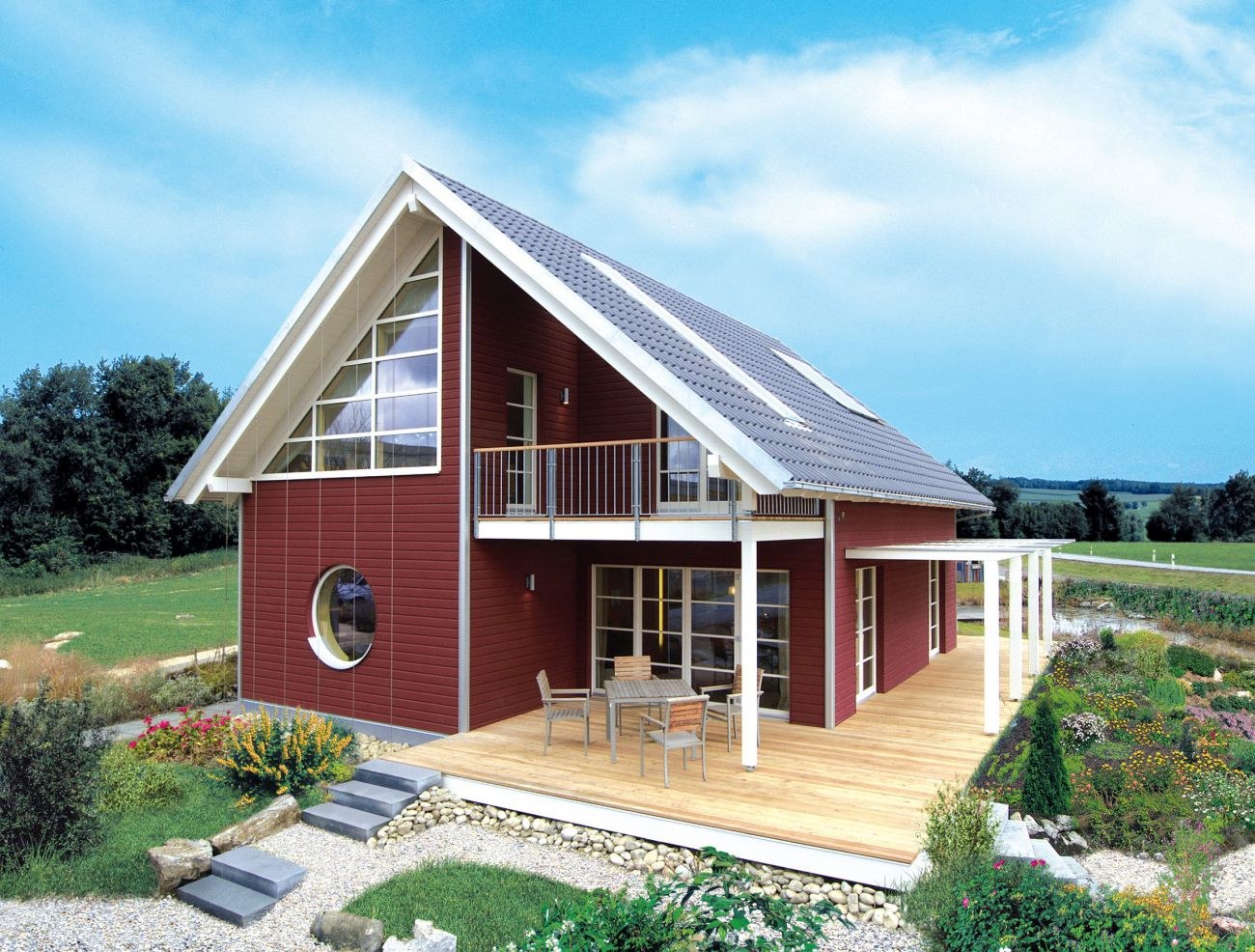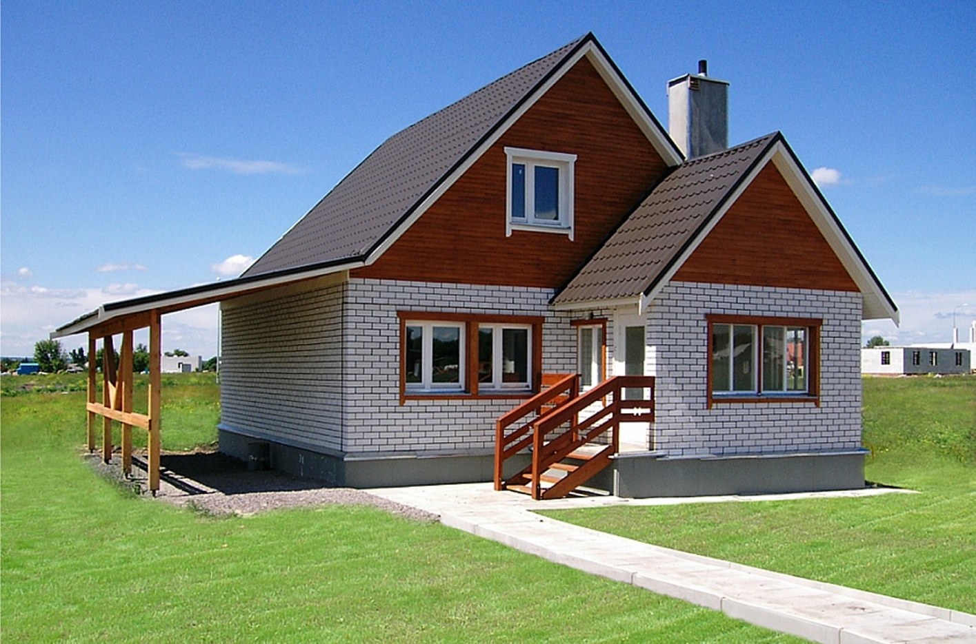 Фасады домов с двухскатной крышей