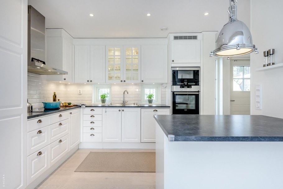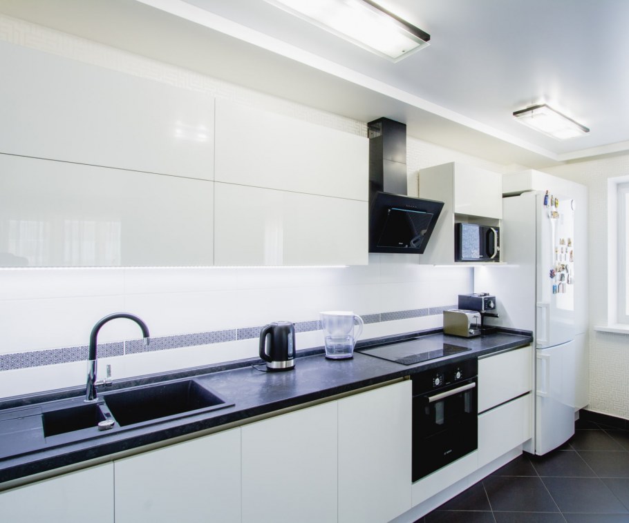 Кухня из МДФ Крашеного «Орион» NCS s3005-g50y матовый/RAL 9003