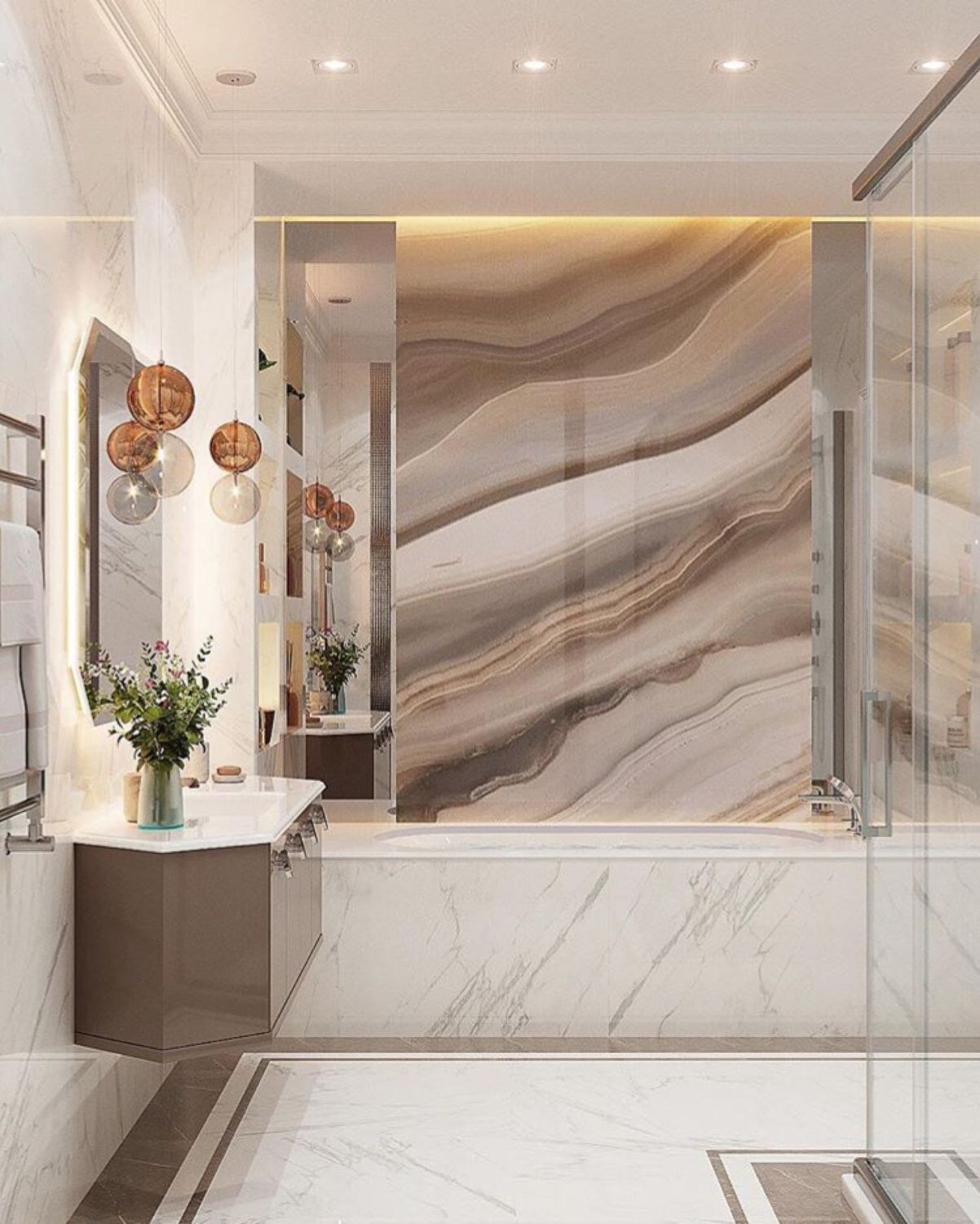 Нужно ли подбирать рисунок на плитке под мрамор в интерьере (57 фото)