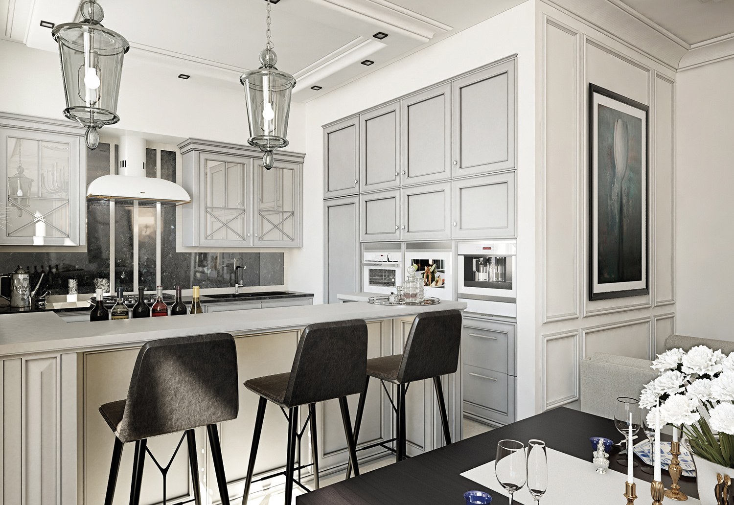 Кухня в бело серых тонах