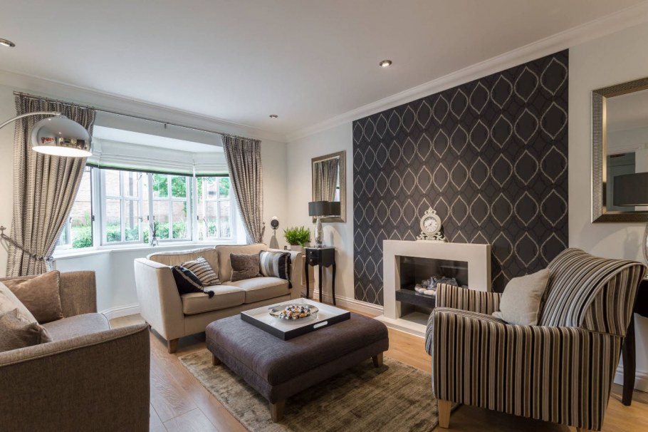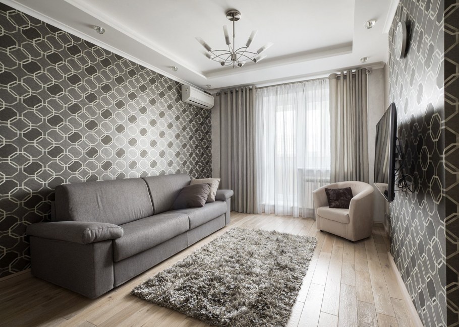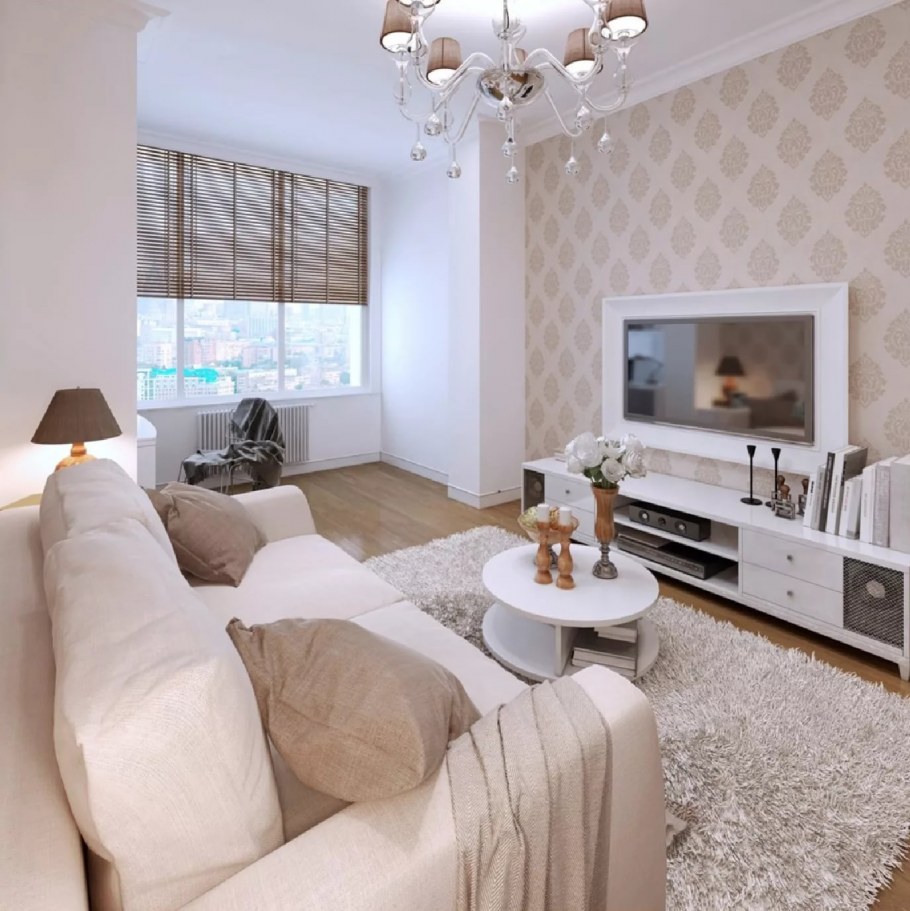 Дизайн зала в квартире комбинированные обои светлые (57 фото)