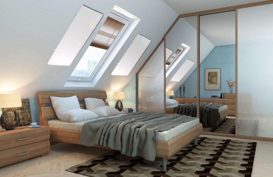 Интерьер мансардной спальни