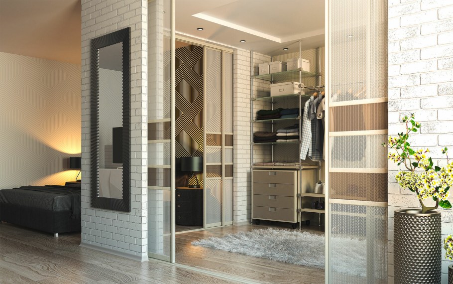 Гардеробные шкафы в комнату с откатными дверями (42 фото)