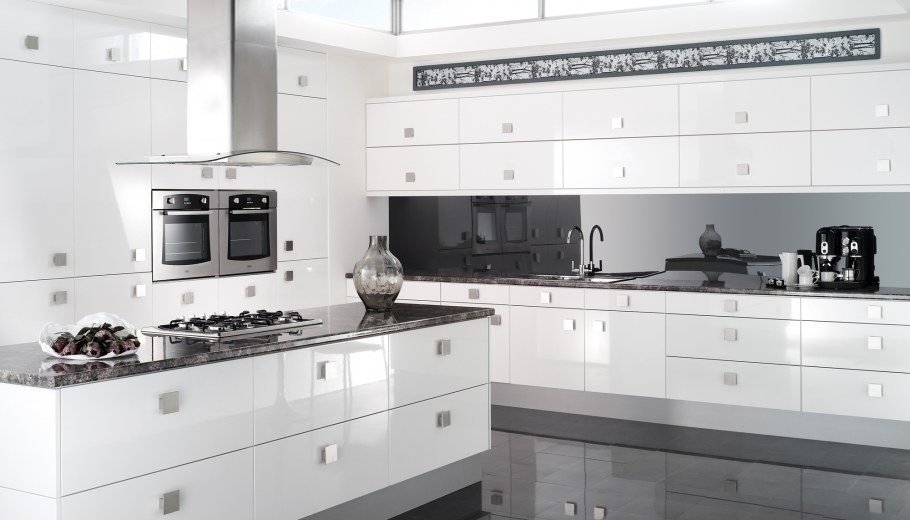 Белый гарнитур с черными ручками в интерьере (47 фото)