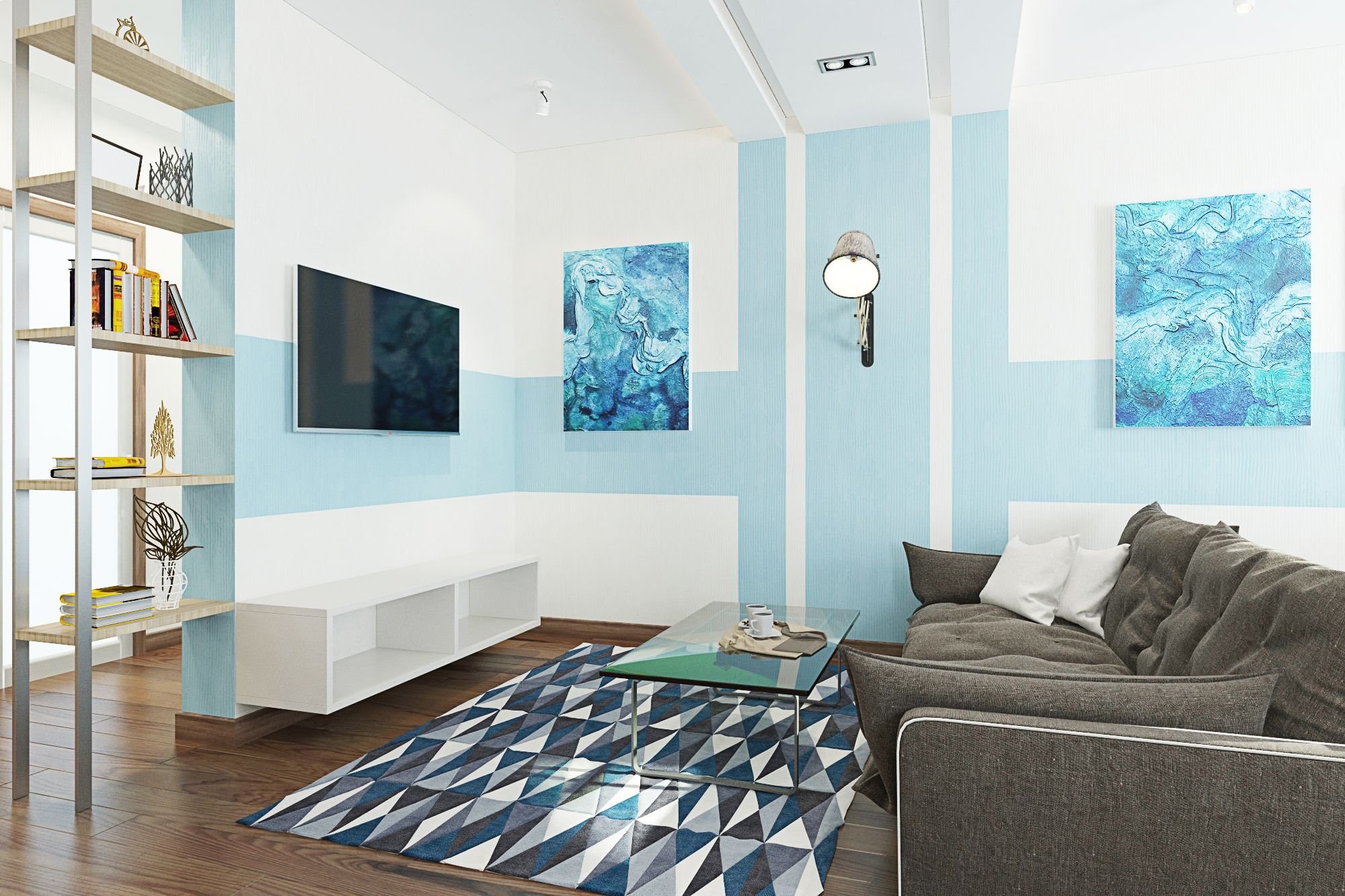 Гостиная в голубых тонах
