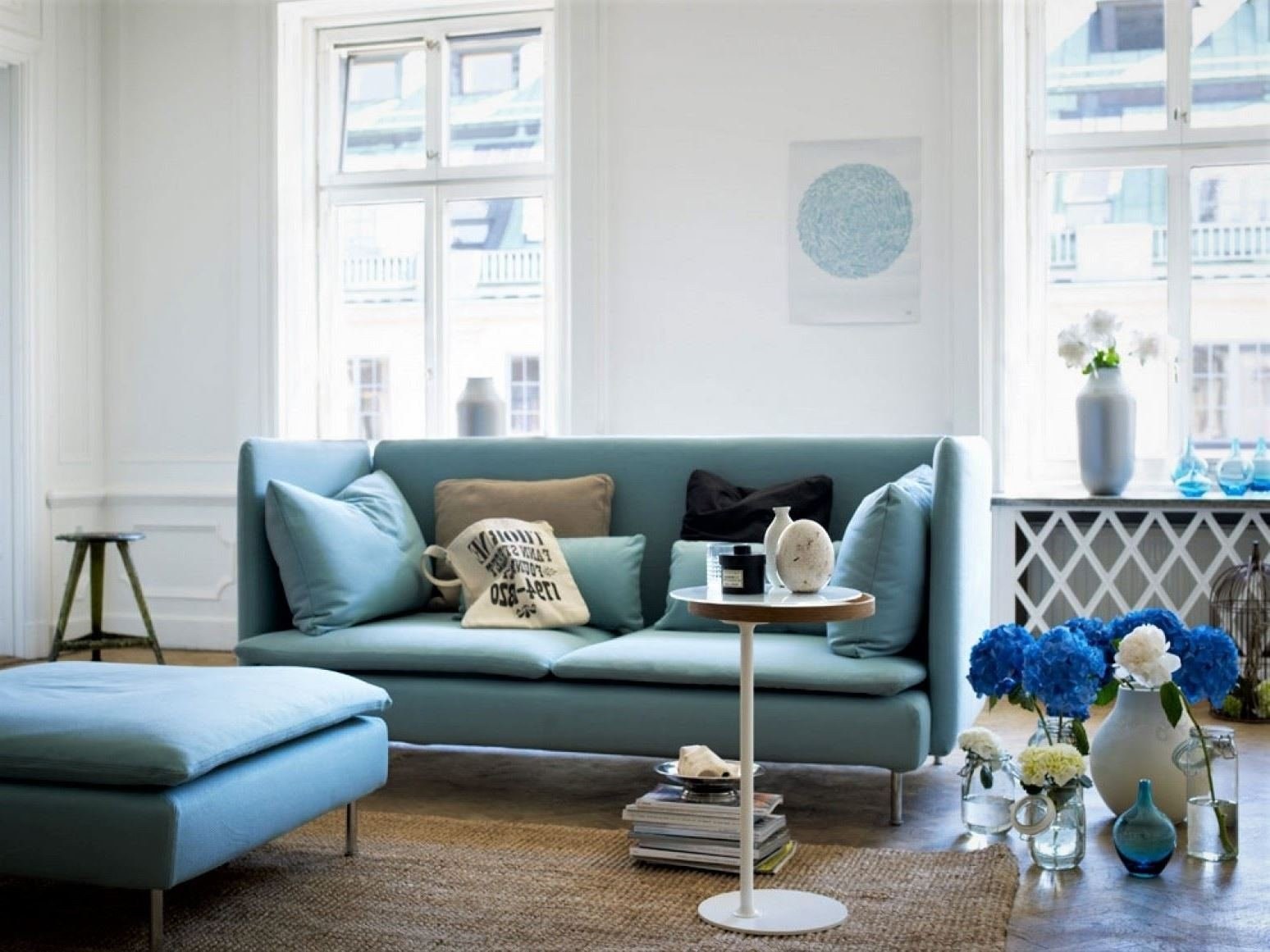 Пастельно голубая гостиная