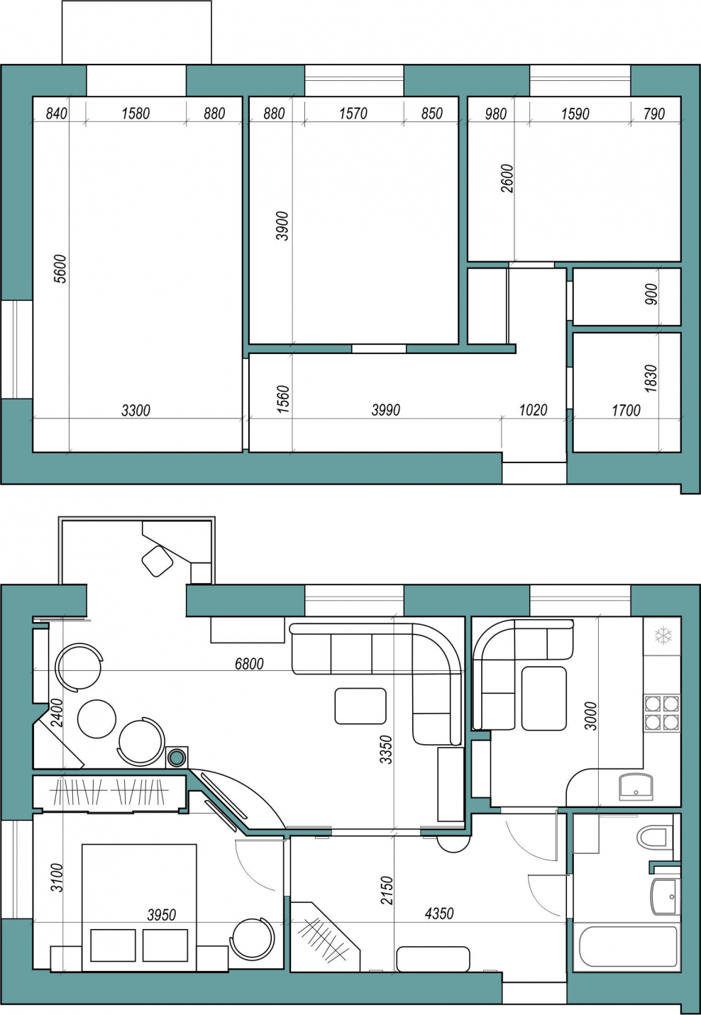 Двухкомнатная хрущевка с проходной комнатой перепланировка