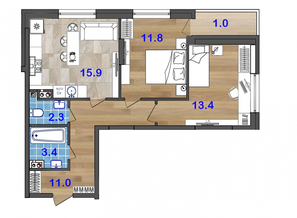 Планировка двухкомнатной квартиры ткацкий проезд 5 Тюмень