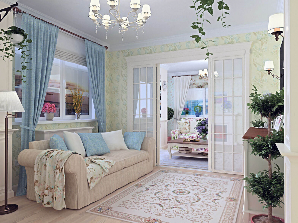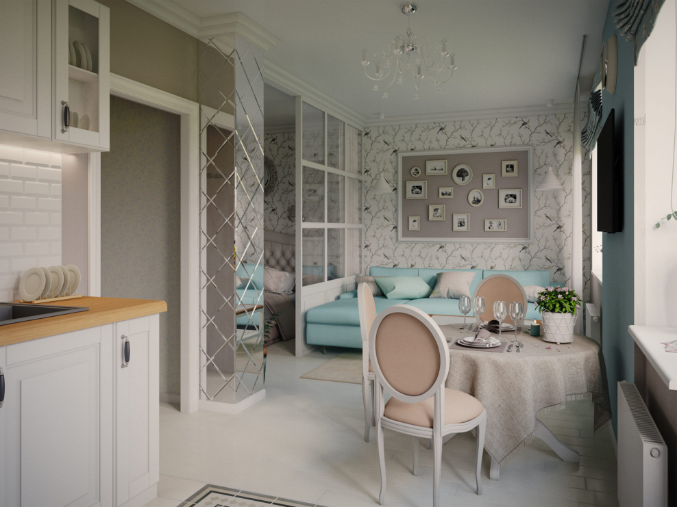 Гостиная в стиле Прованс в квартире 20 кв.м