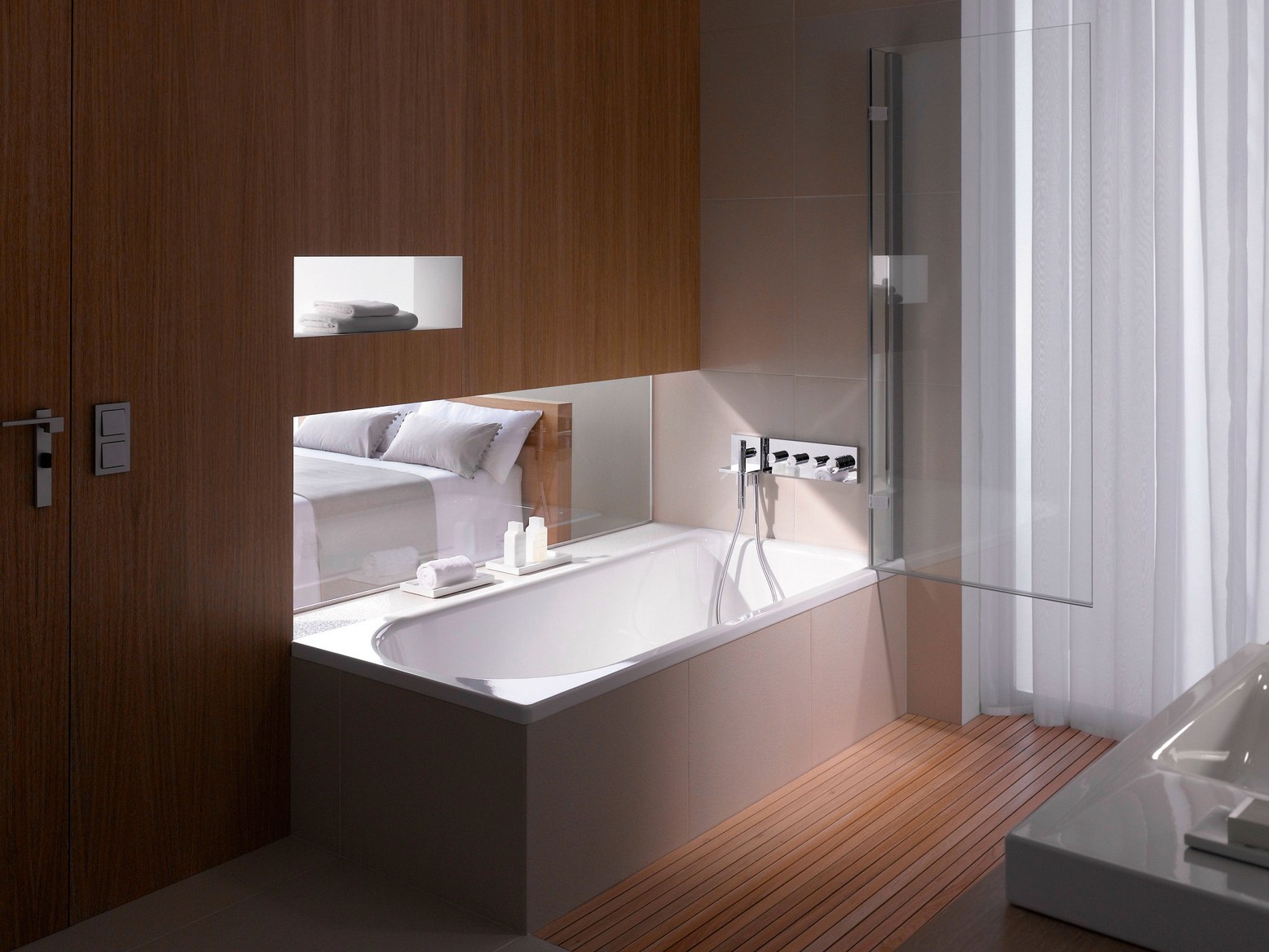 Отдельностоящая ванна в маленькой ванной (31 фото)