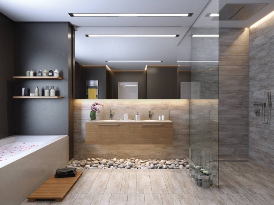 Плитка под дерево в ванной на стены (60 фото)