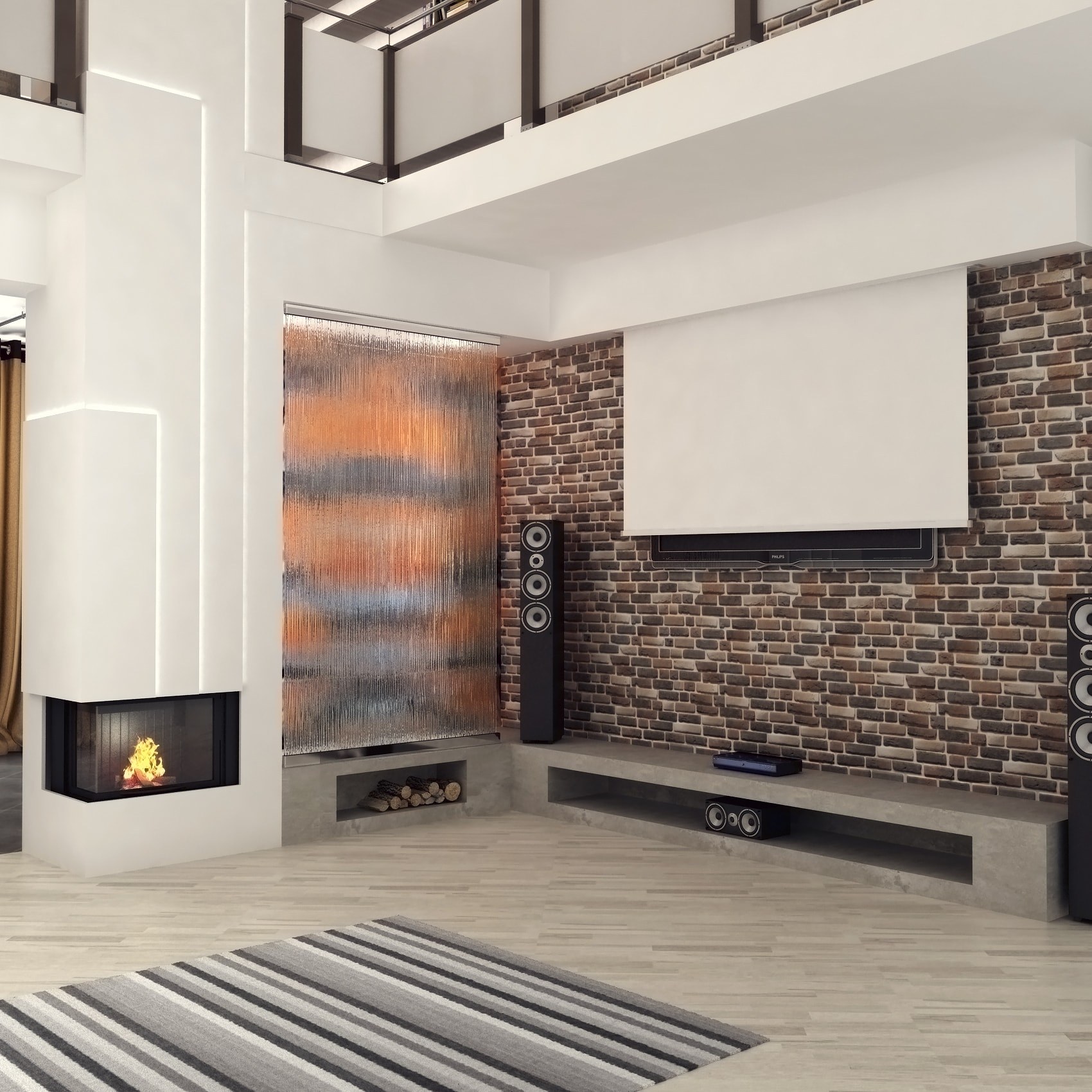 Гостиная со вторым светом в стиле лофт
