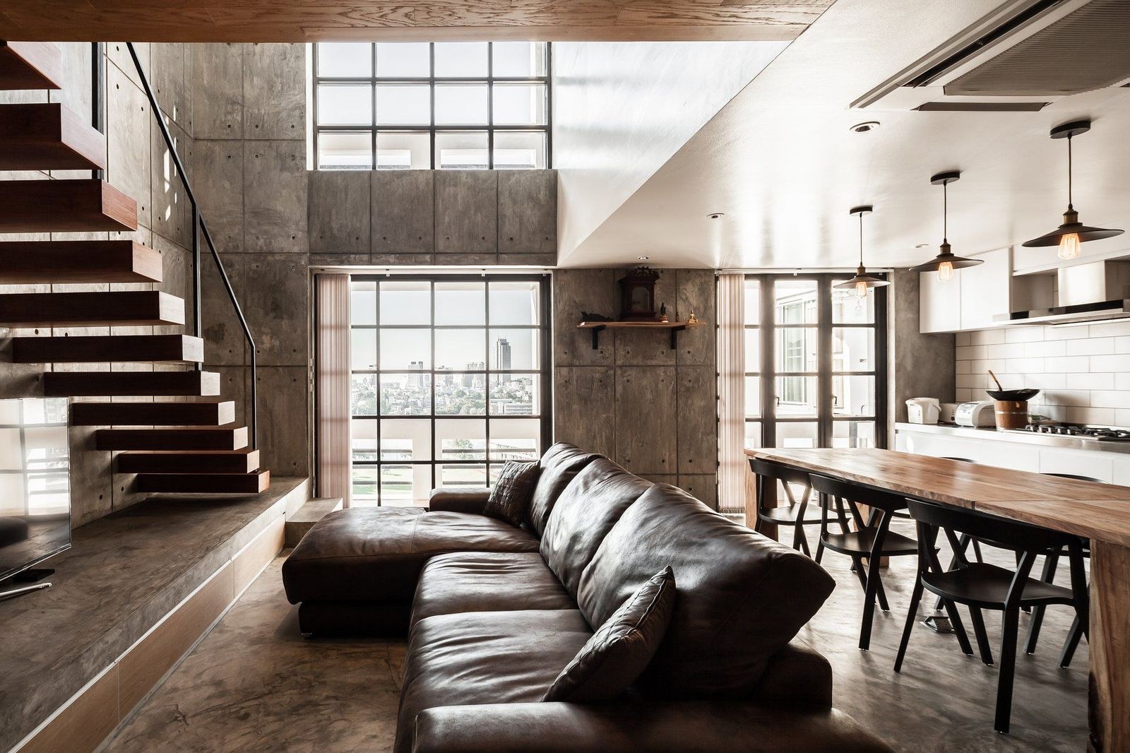 Кухня гостиная со вторым светом в стиле лофт