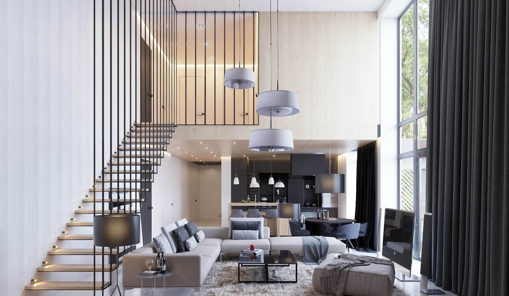 Интерьер с высокими потолками в частном доме