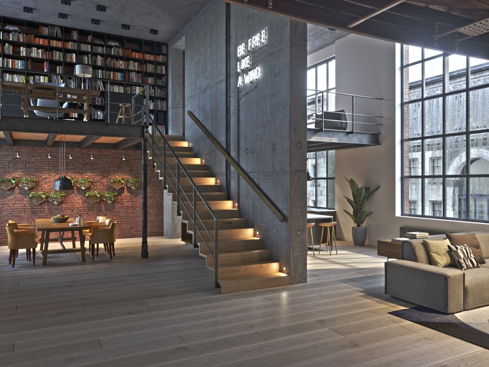 Интерьер лофт двухэтажный