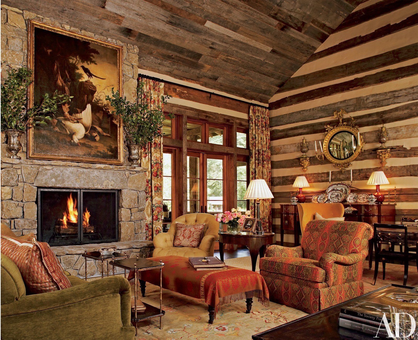 Гостиная в деревенском стиле с камином
