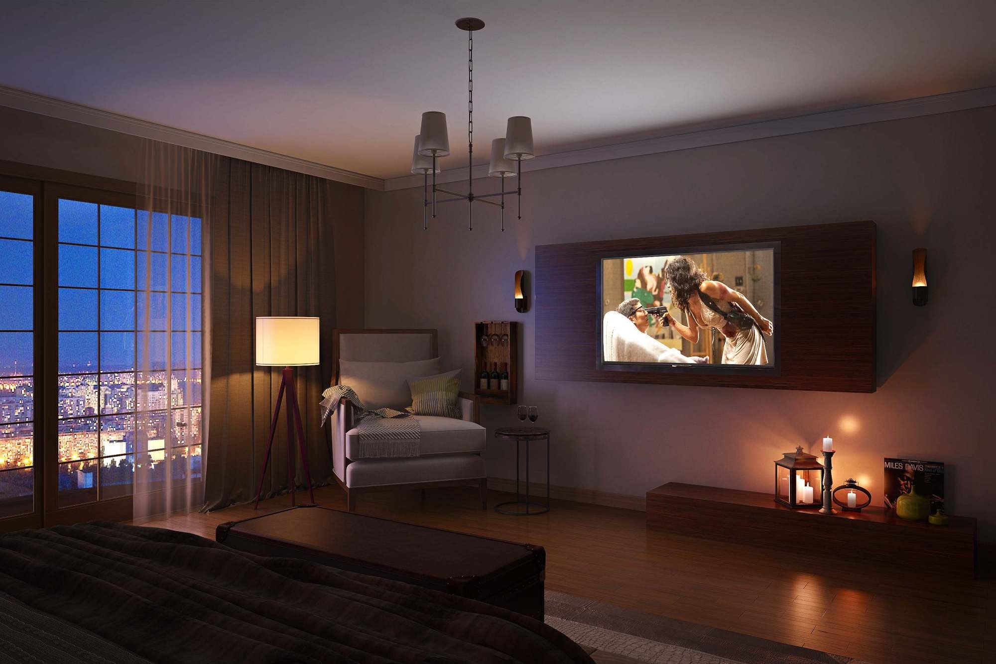 Спальня с большим телевизором