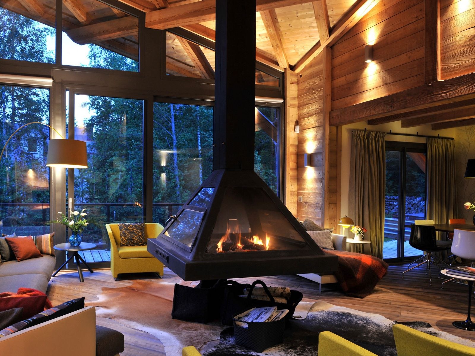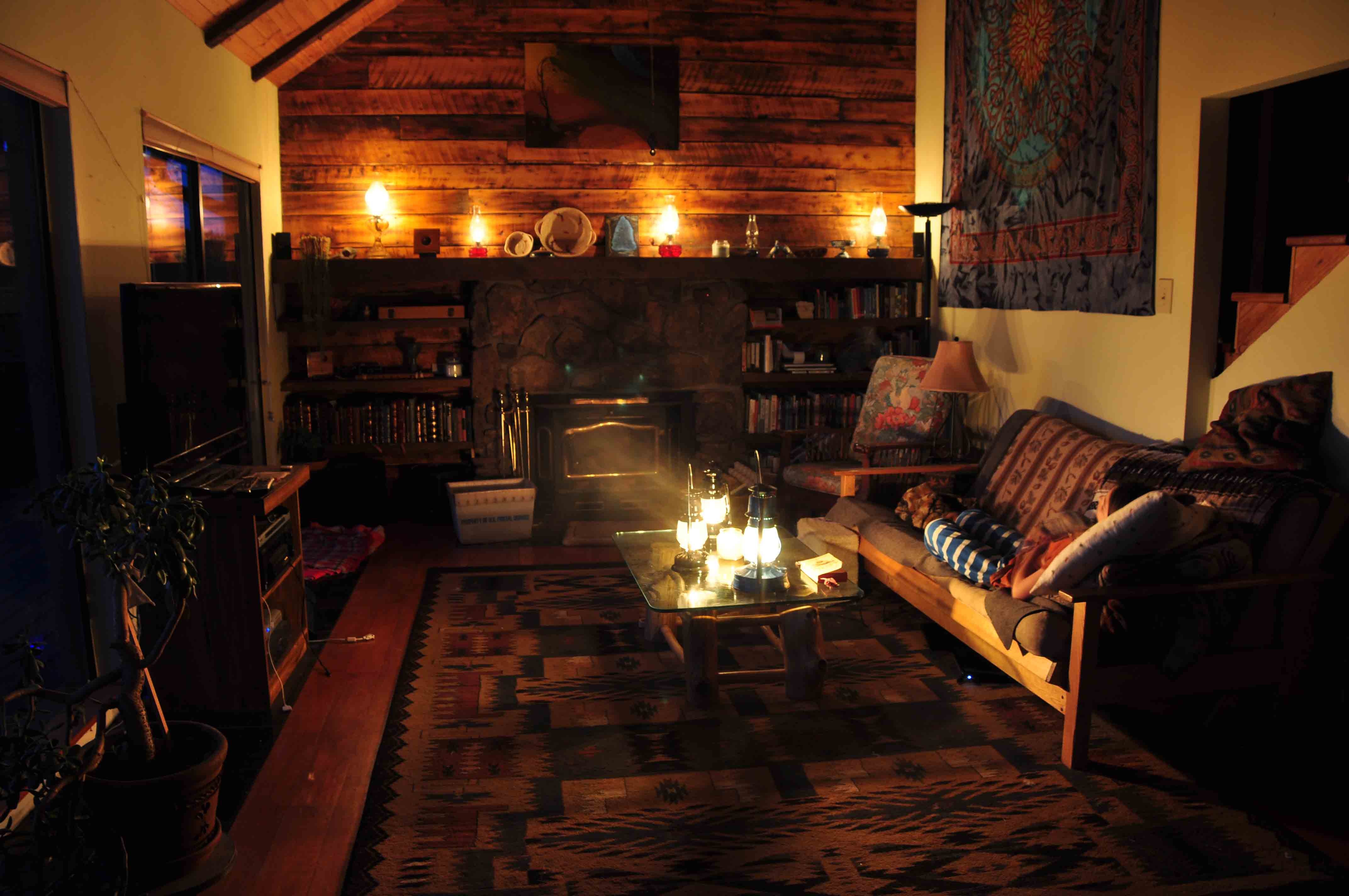 Гостиная с камином вечером