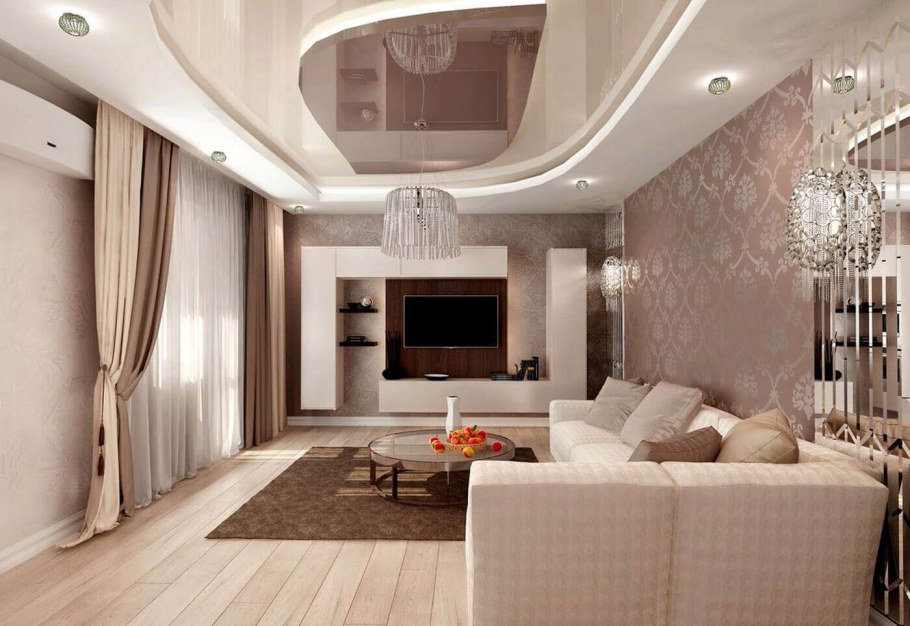 Потолок в маленькой гостиной (27 фото)