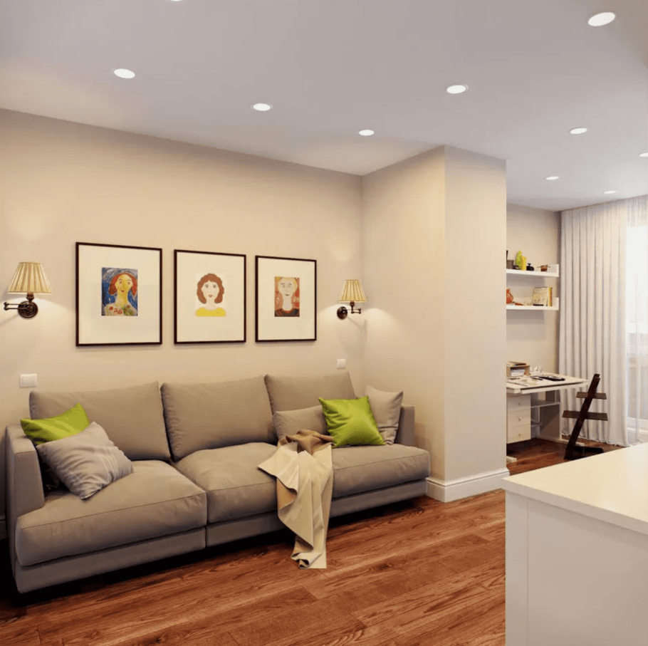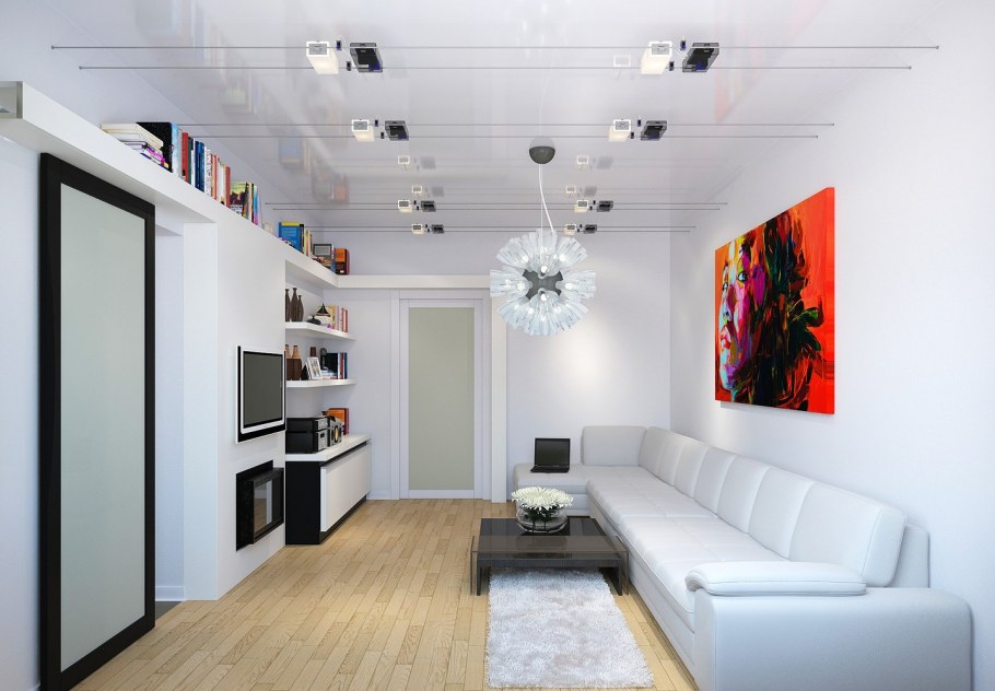 Освещение в узкой гостиной