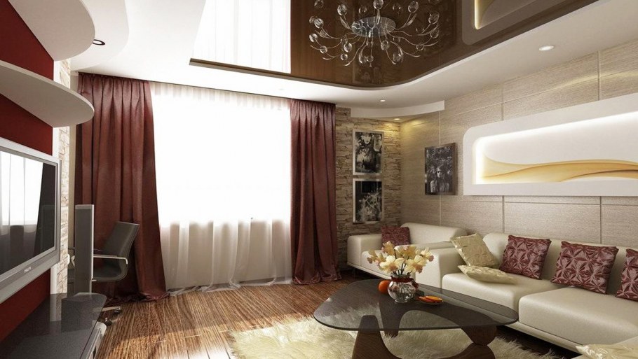 Натяжные потолки для зала в квартире