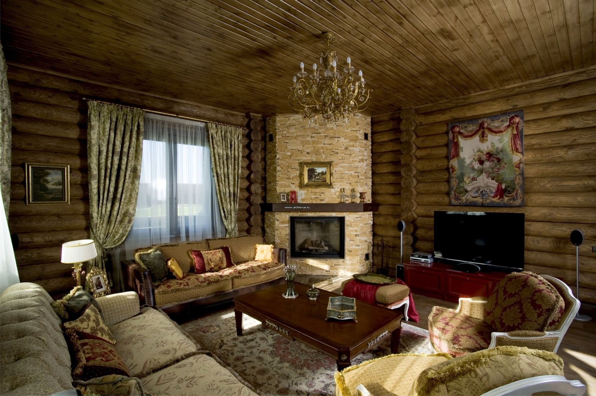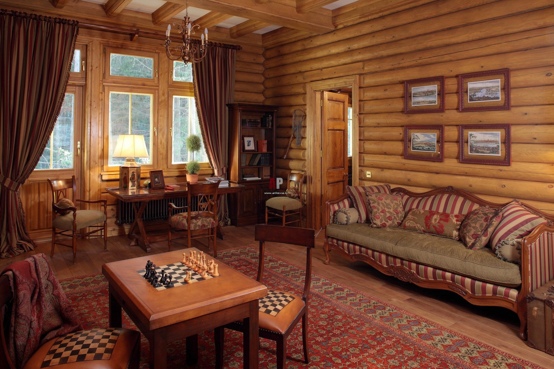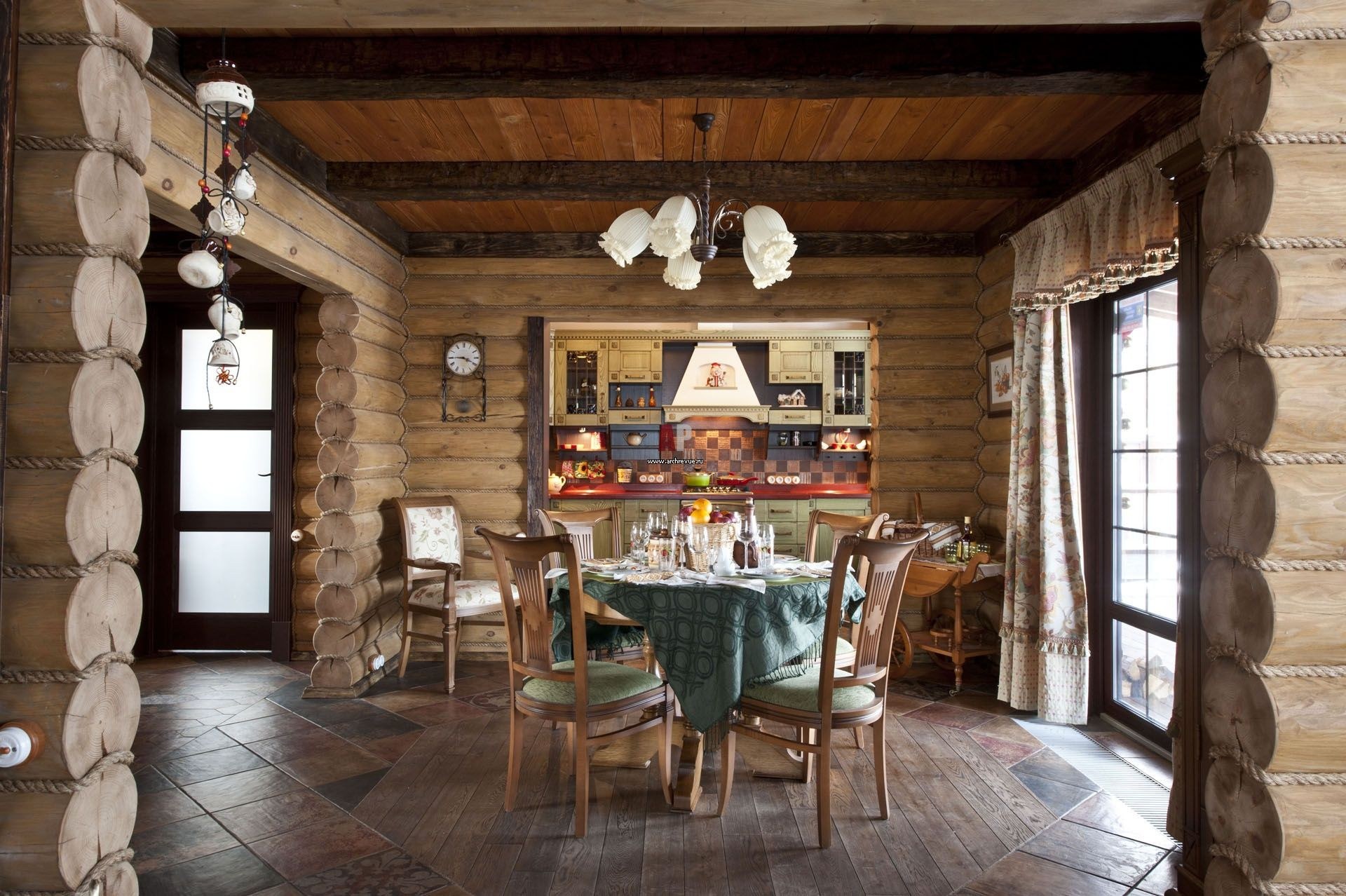 Интерьер дома из оцилиндрованного бревна в стиле Прованс