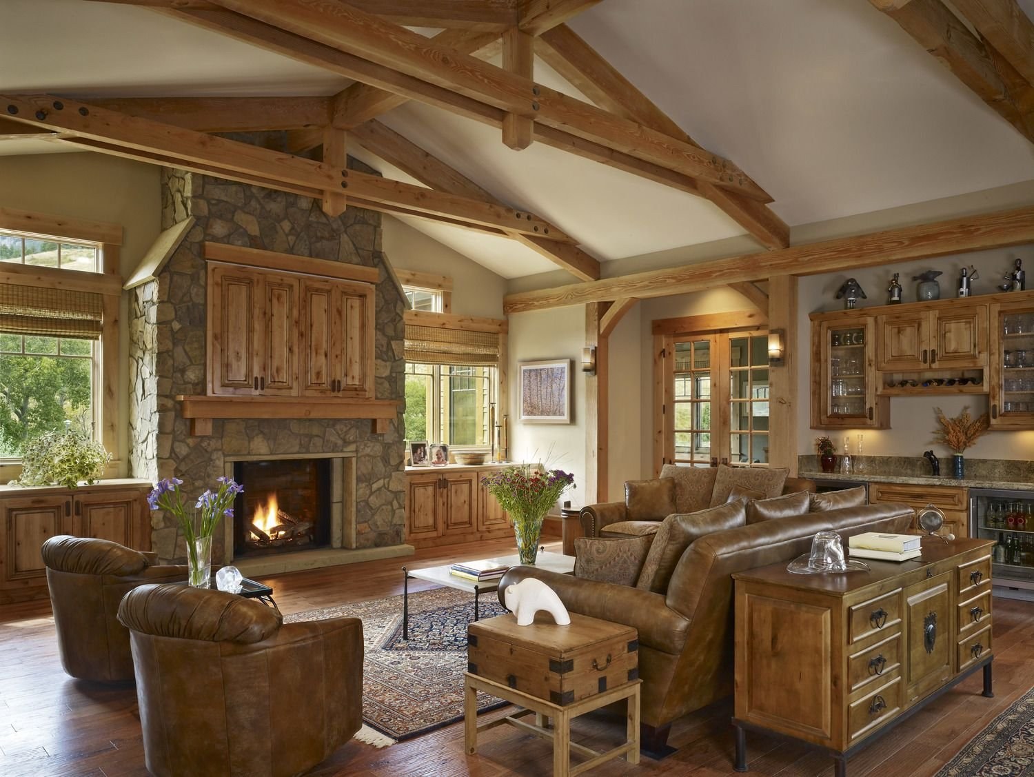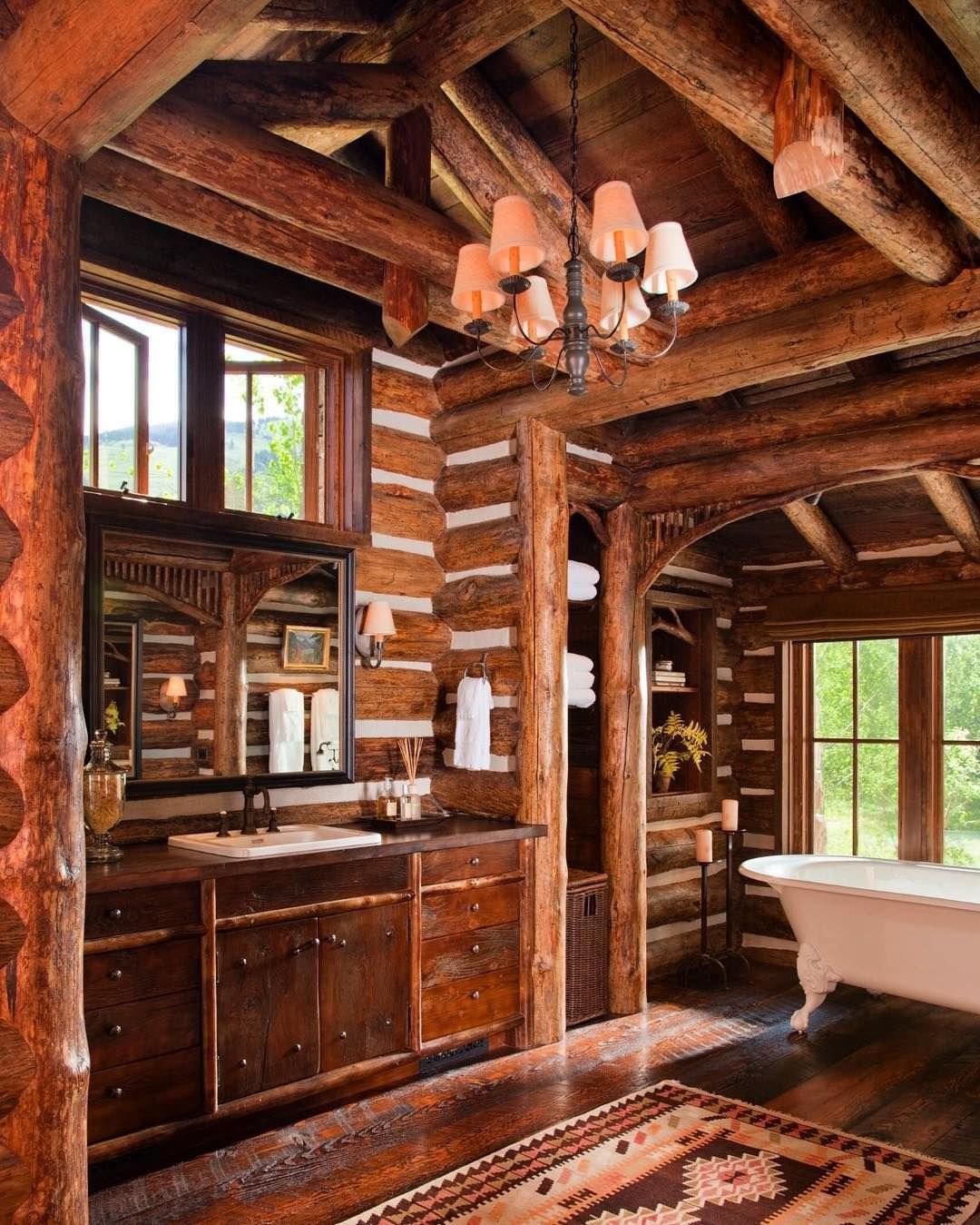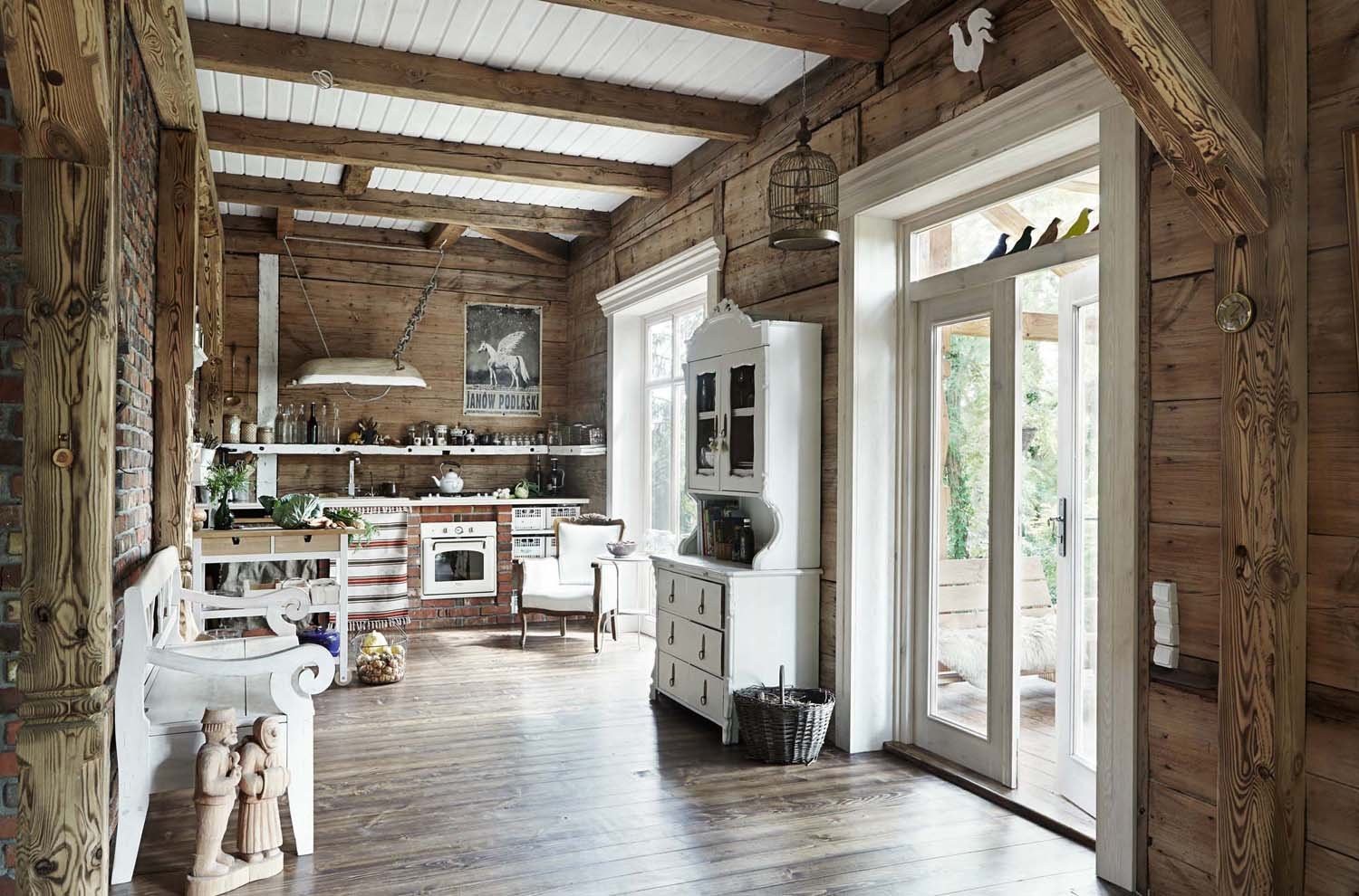 Интерьер дома из оцилиндрованного бревна в стиле Прованс