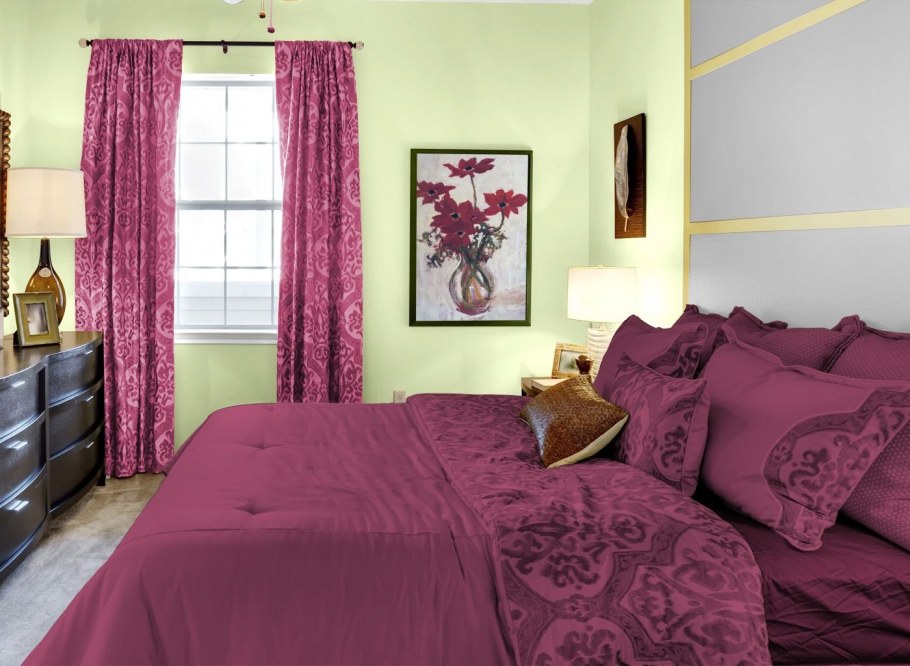 Вишневые стены в спальне