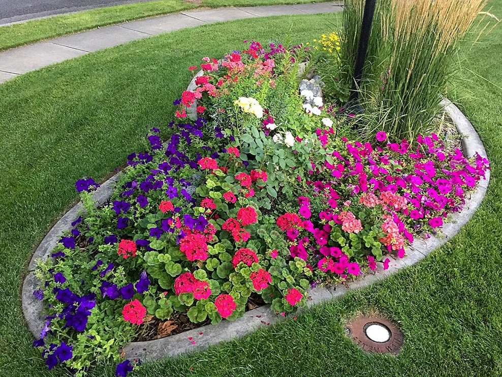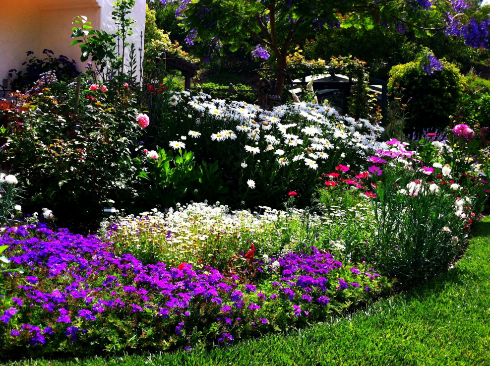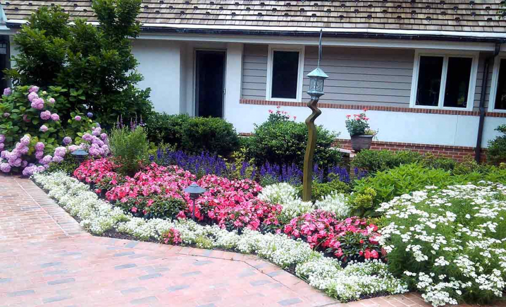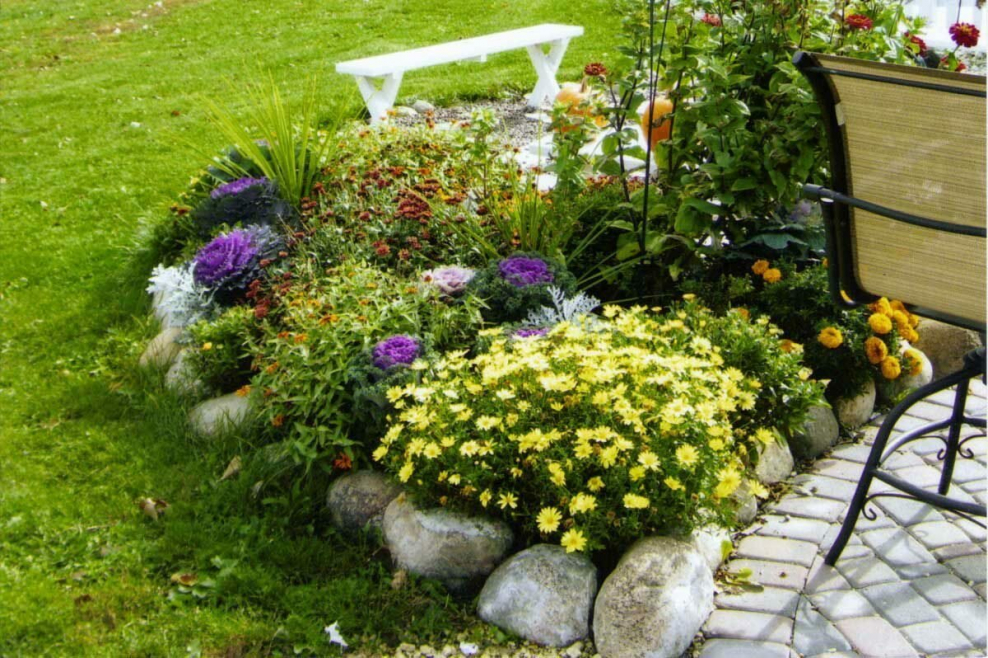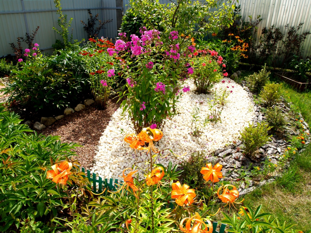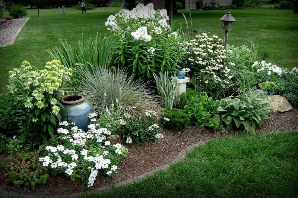 Клумба Мальва дельфиниум Хоста Флоксы рудбекия