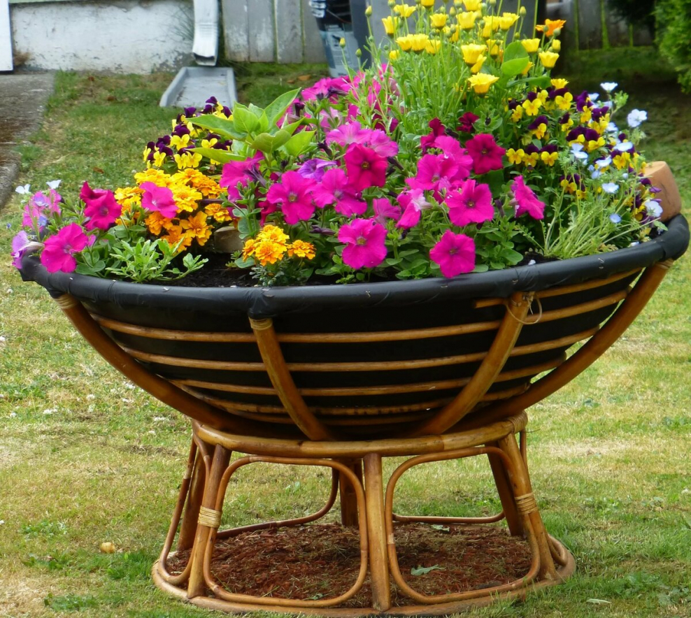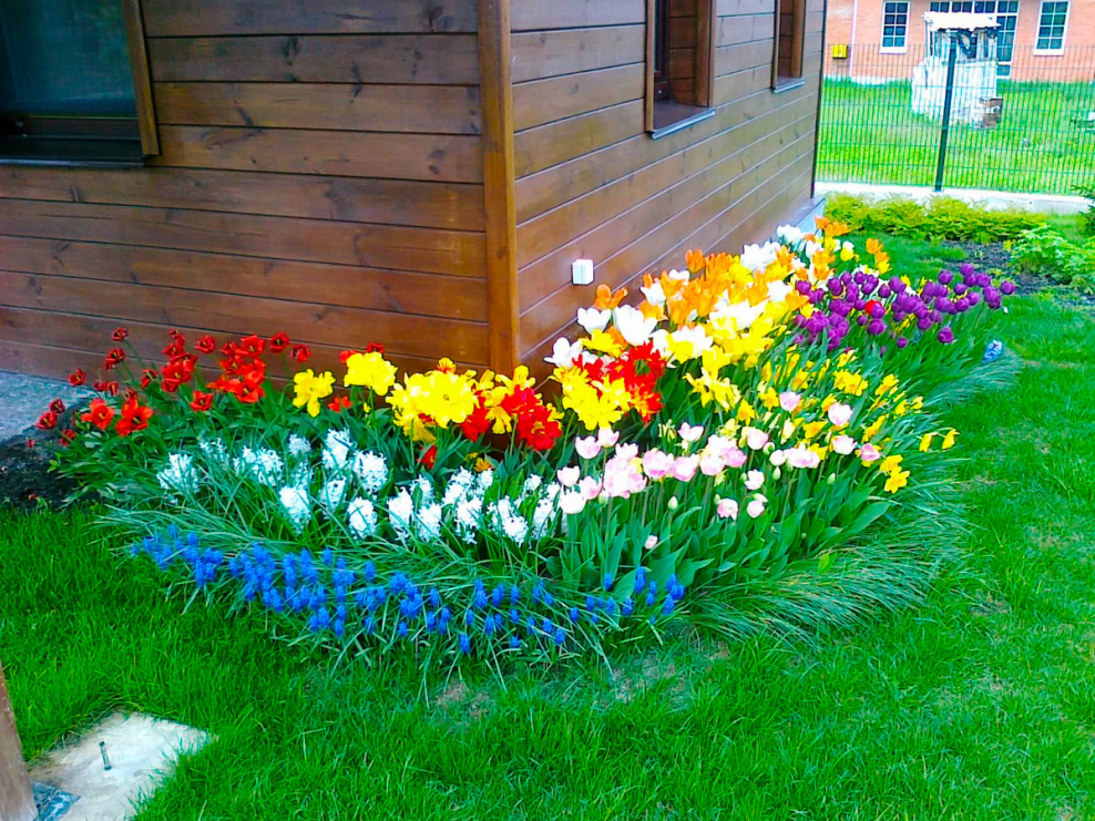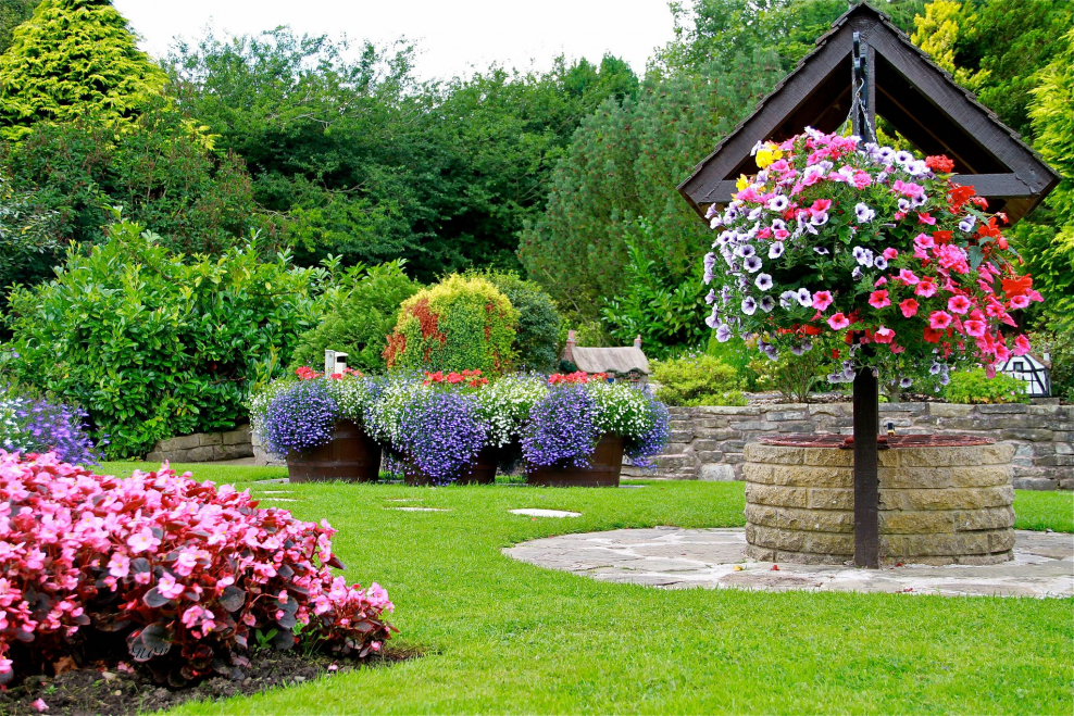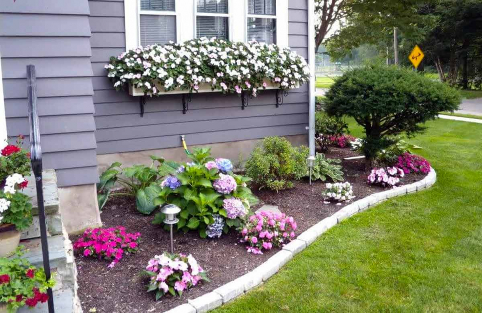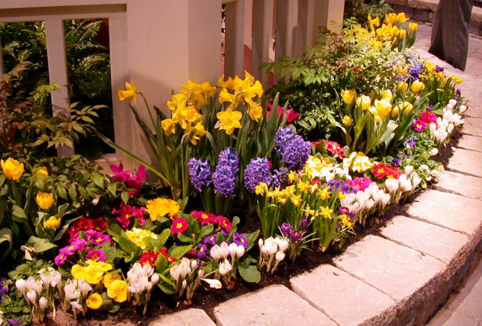 Клумба Мальва дельфиниум Хоста Флоксы рудбекия