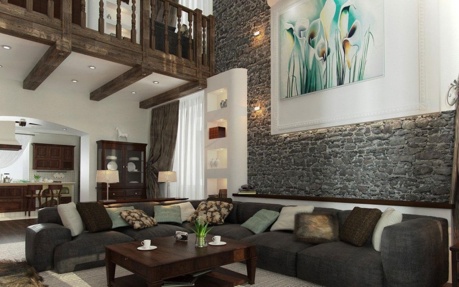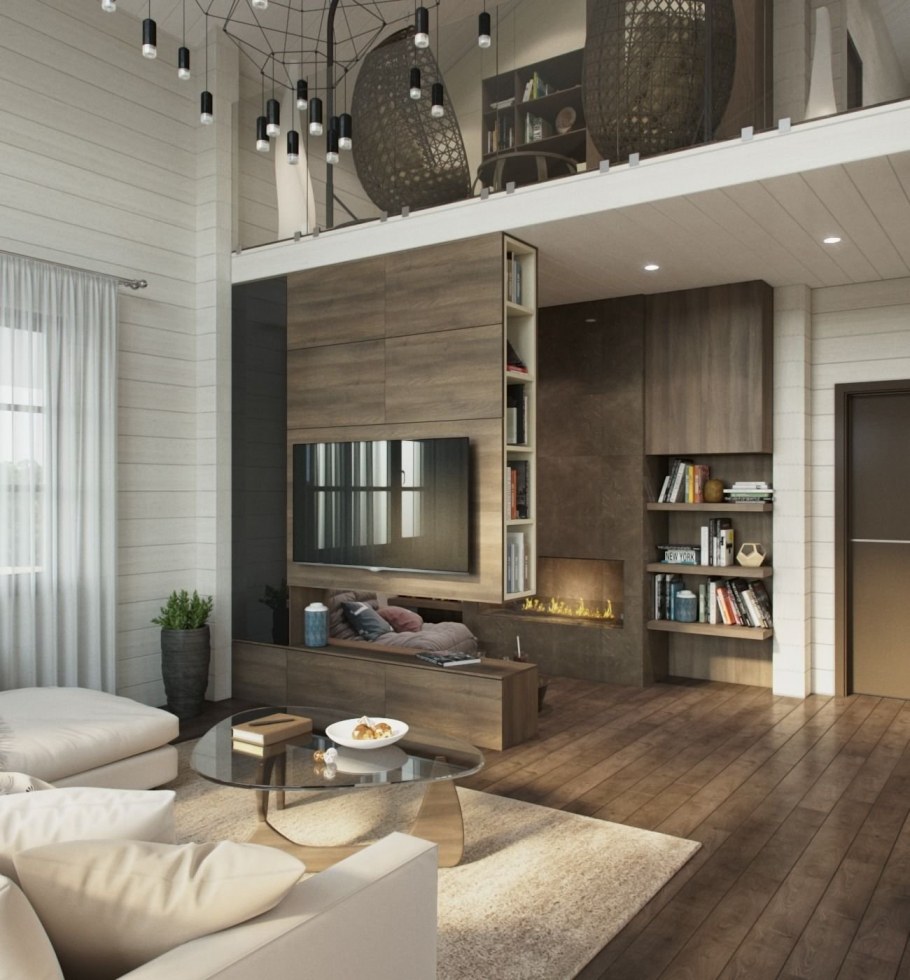 Дизайн гостиной в частном доме оригинальный
