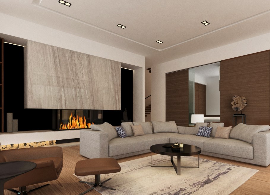Камин в гостиной со вторым светом