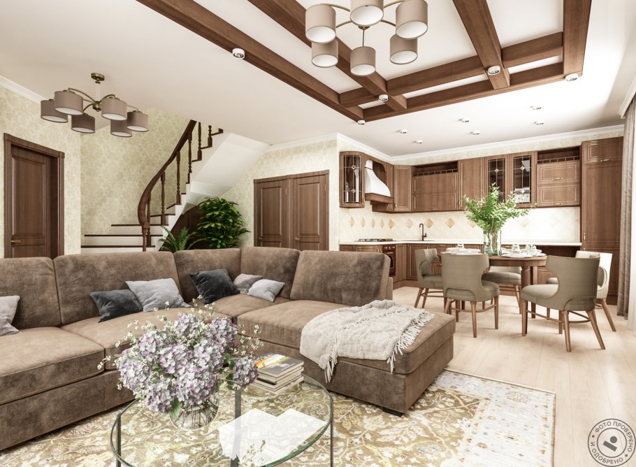 Кухня гостиная в коттедже