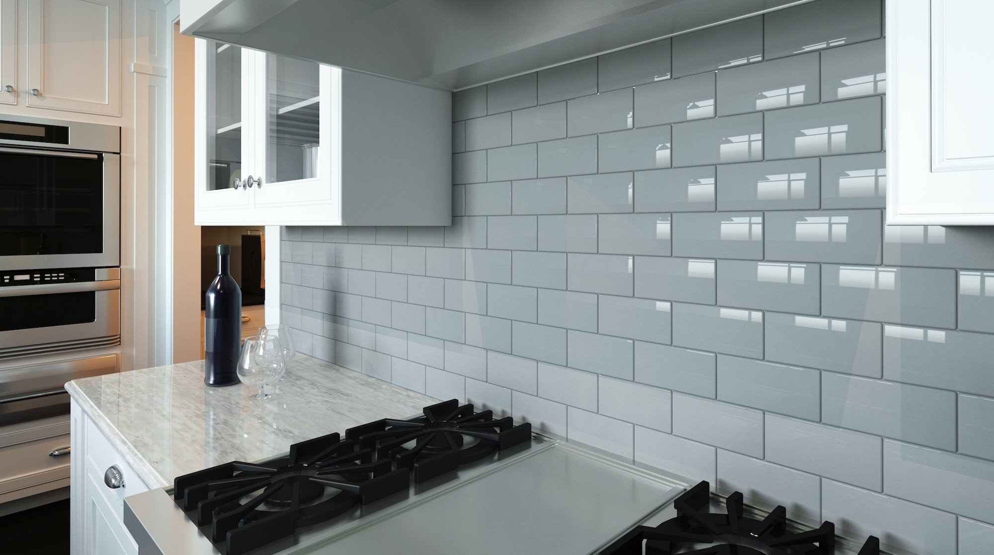 Синяя плитка на кухне