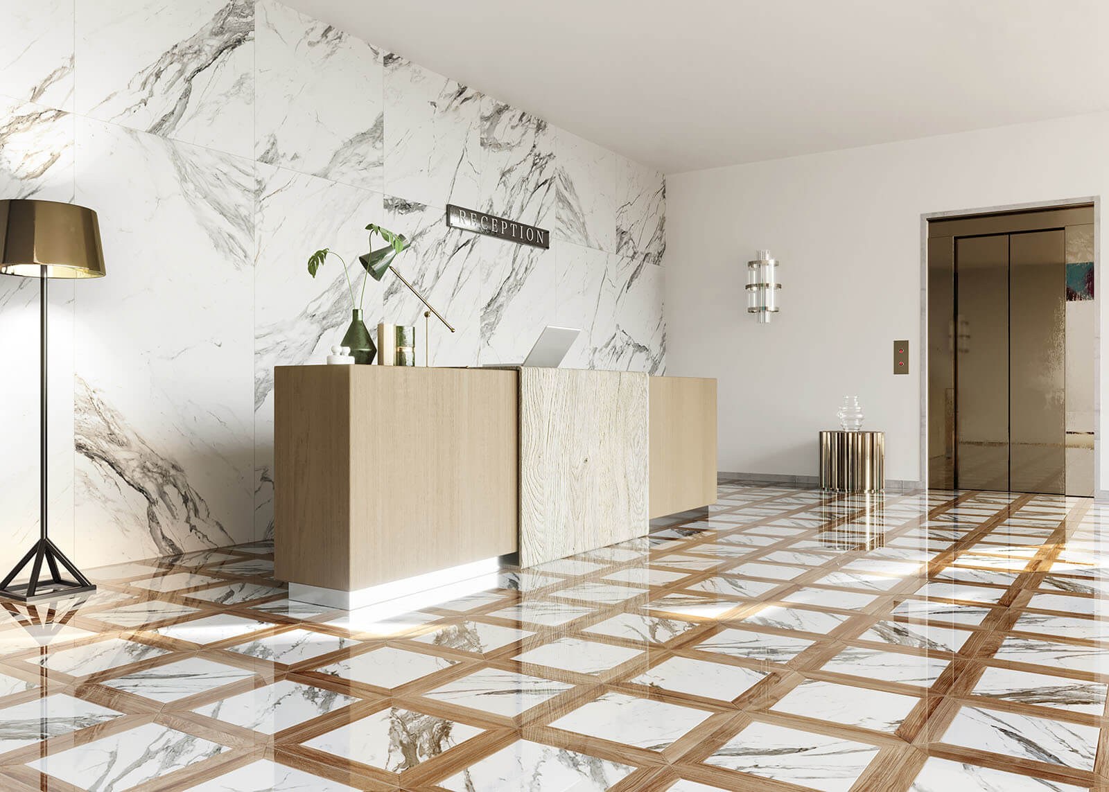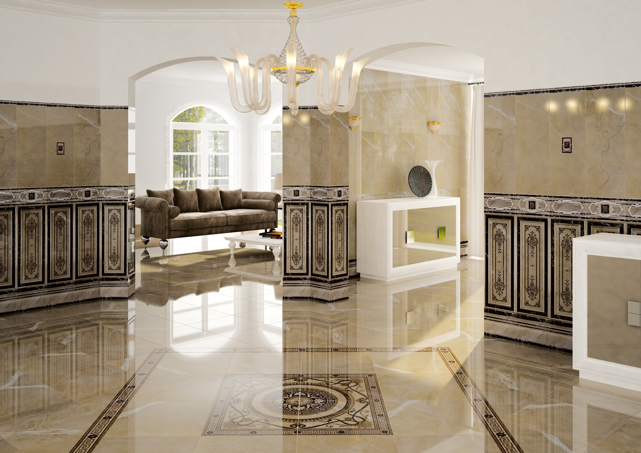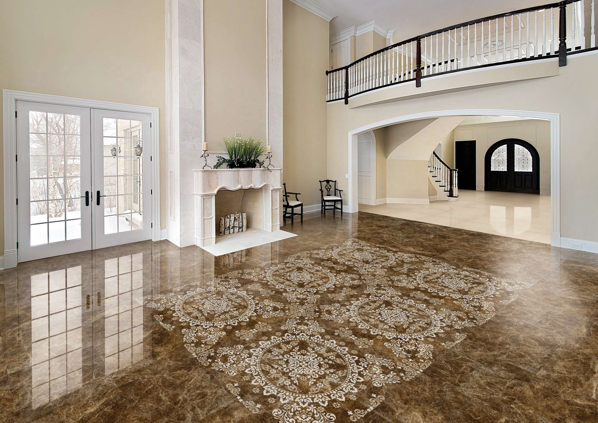Дизайн однокомнатной квартиры с мраморной напольной плиткой (46 фото)