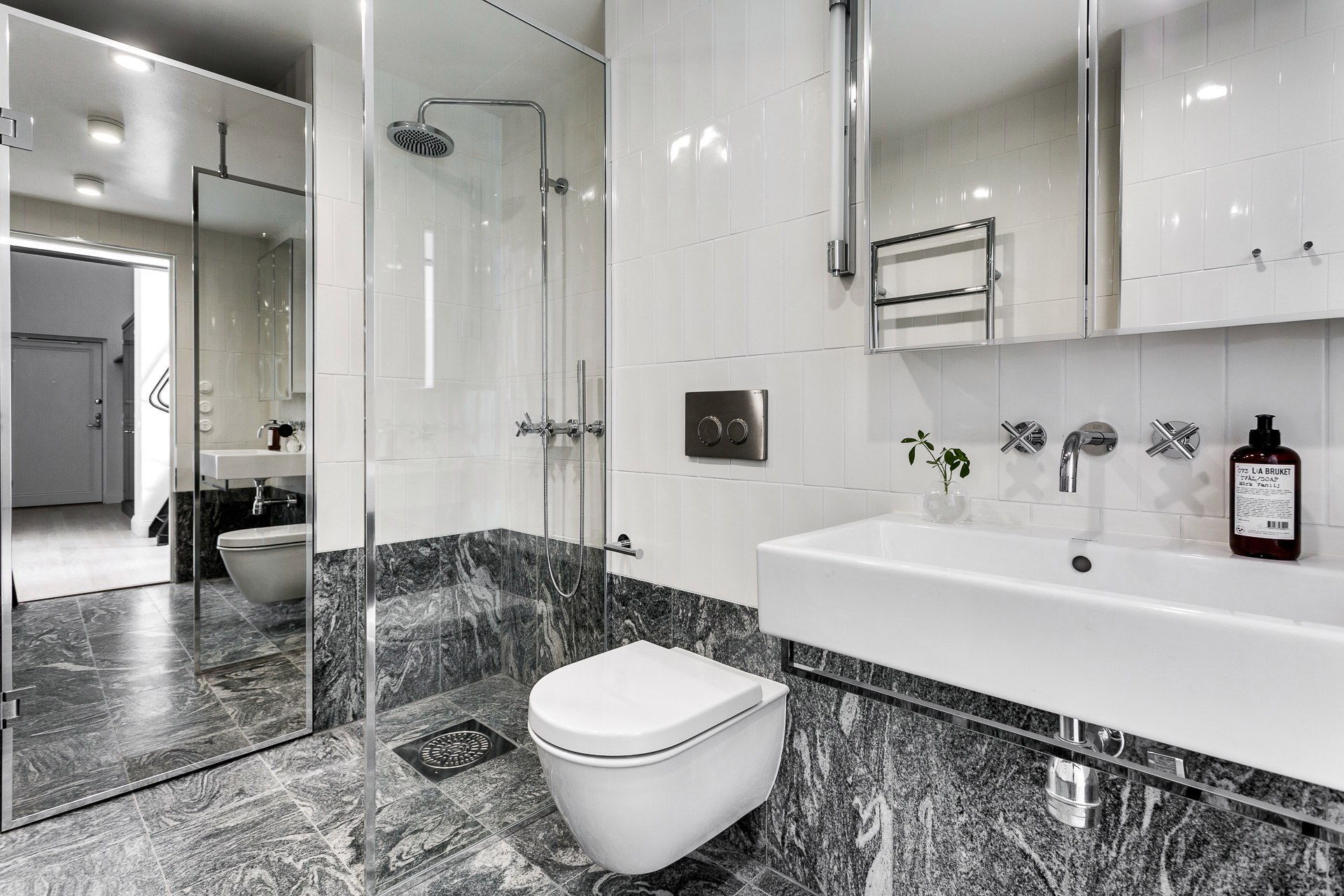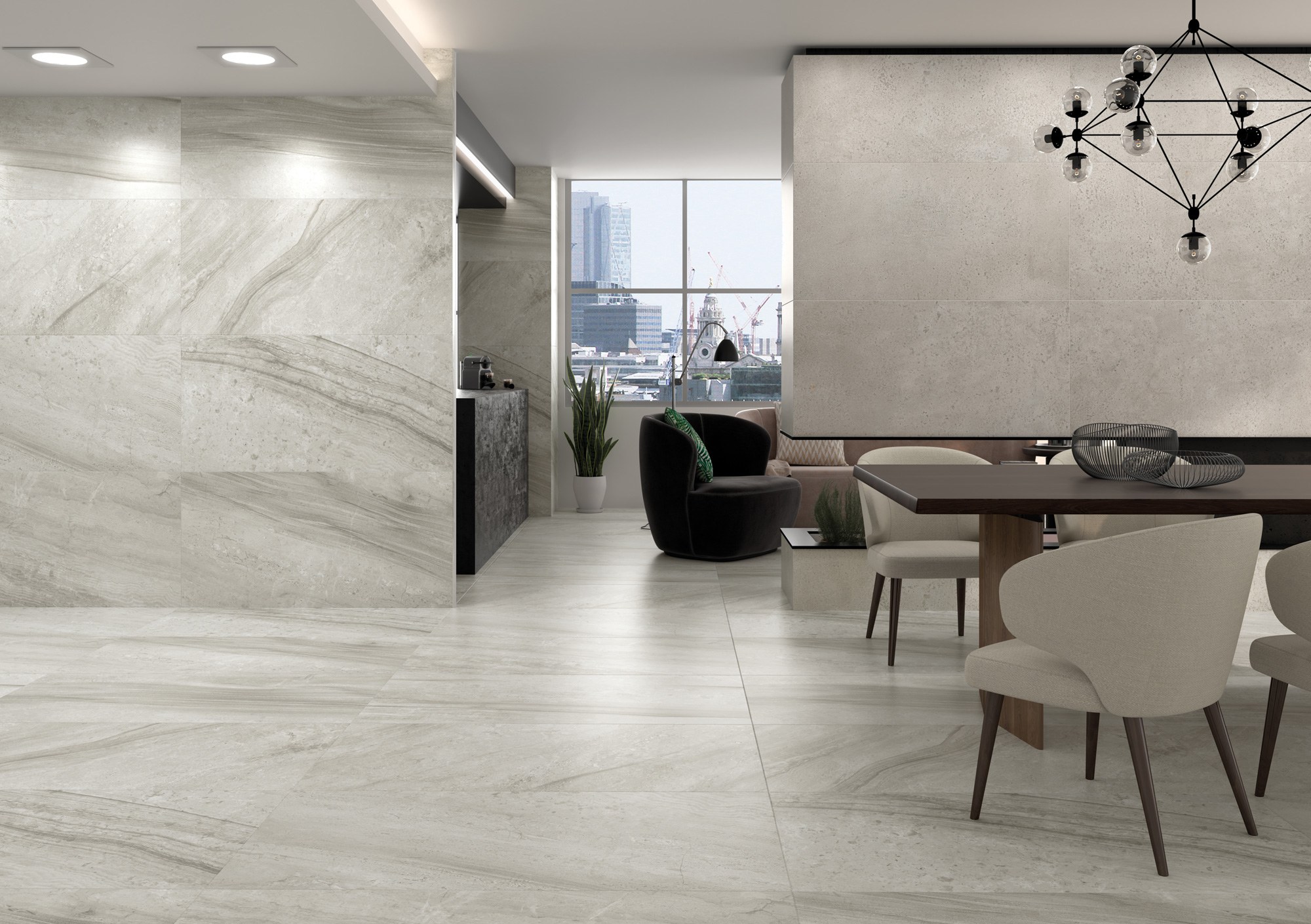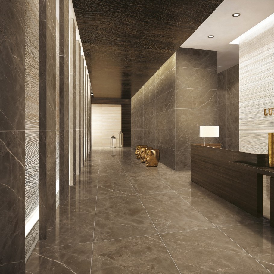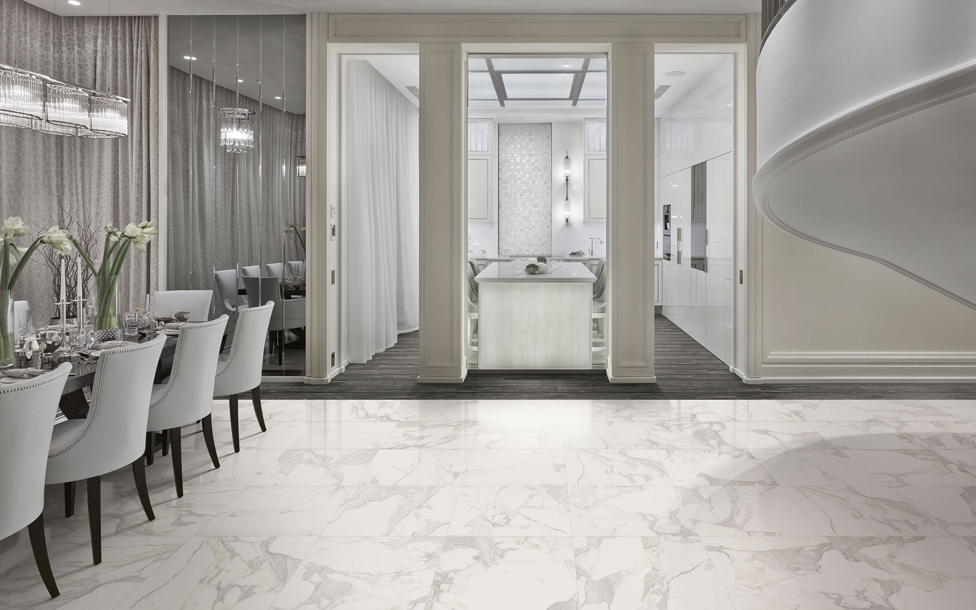 Дизайн однокомнатной квартиры с мраморной напольной плиткой (46 фото)