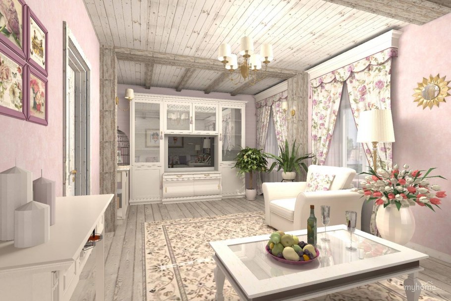 Кухня гостиная в стиле прованс в квартире (47 фото)